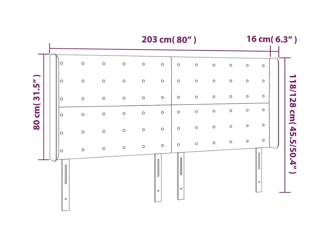 Testiera con ali Grigio scuro 203x16x118/128 cm Velluto