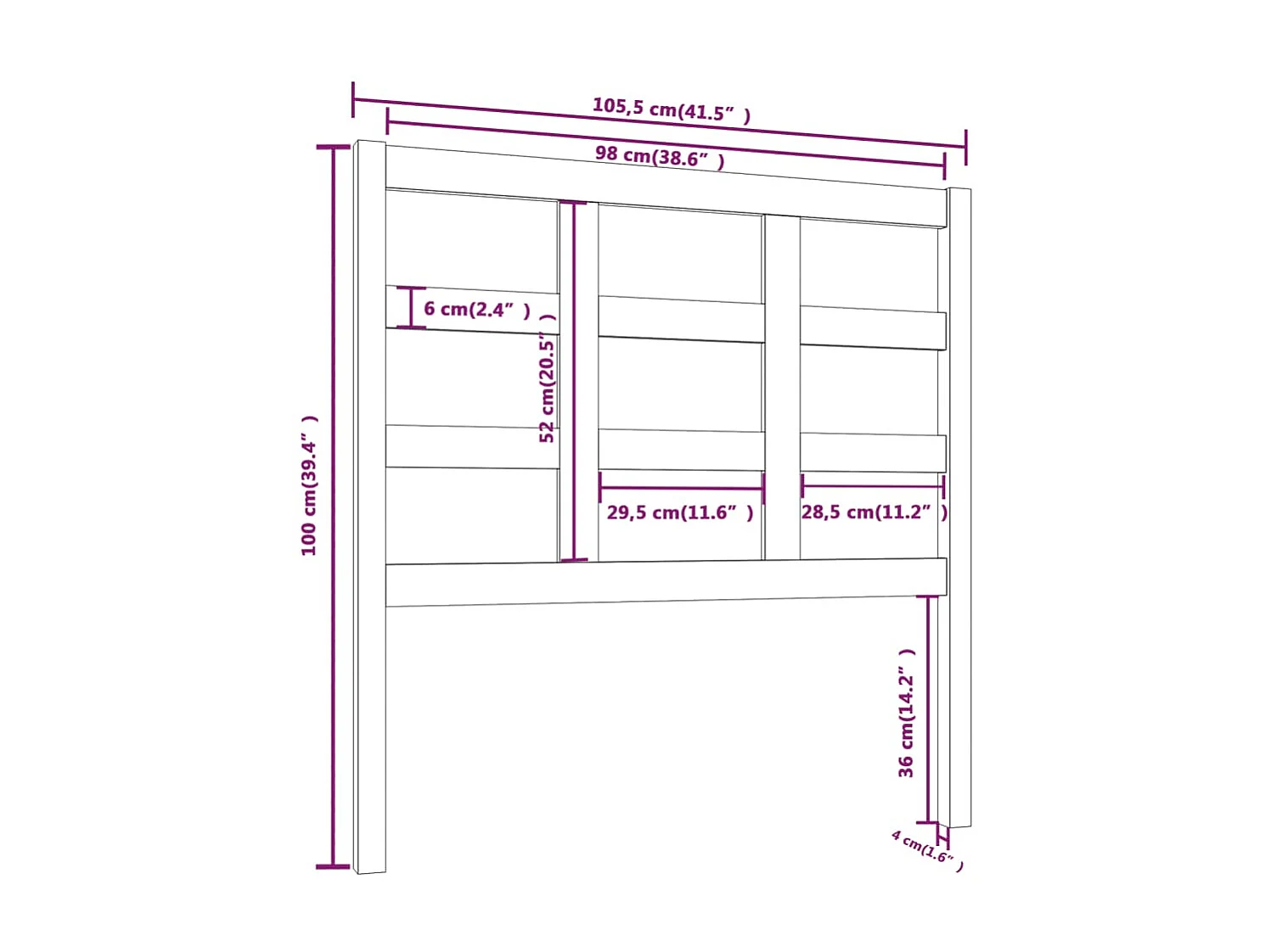 Testiera Nera 105,5x4x100 cm Legno di pino massiccio