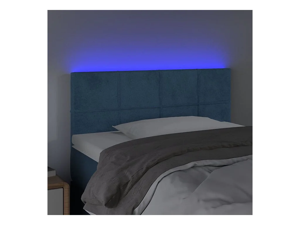Testiera | Testata del letto a LED Blu Scuro 100x5x78/88 cm in Velluto