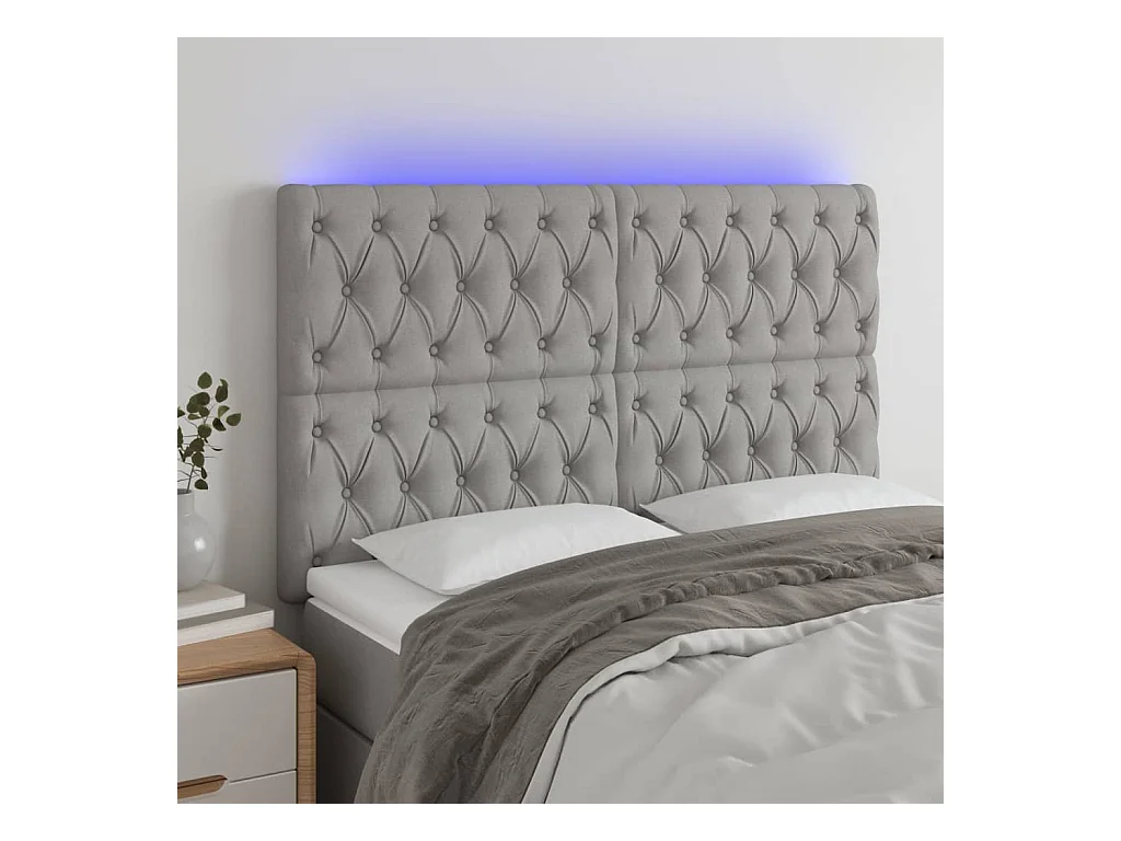Testiera | Testata del letto a LED Grigio Chiaro 144x7x78/88 cm in Tessuto