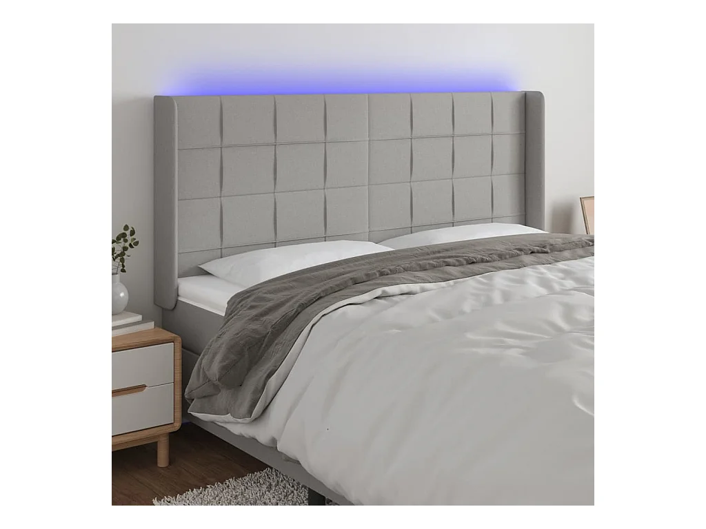 Testiera | Testata del letto a LED Grigio Chiaro 163x16x118/128 cm in Tessuto