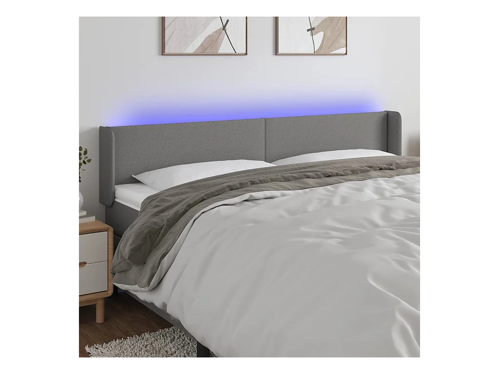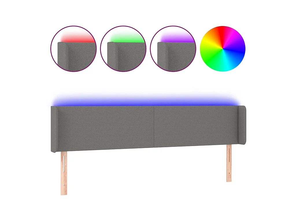 Testiera | Testata del letto a LED Grigio Scuro 203x16x78/88 cm in Tessuto