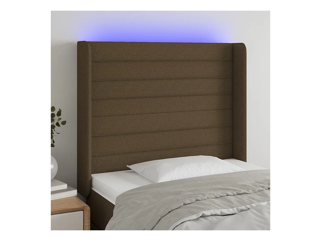 Testiera | Testata del letto a LED Marrone Scuro 90x5x118/128 cm in Tessuto