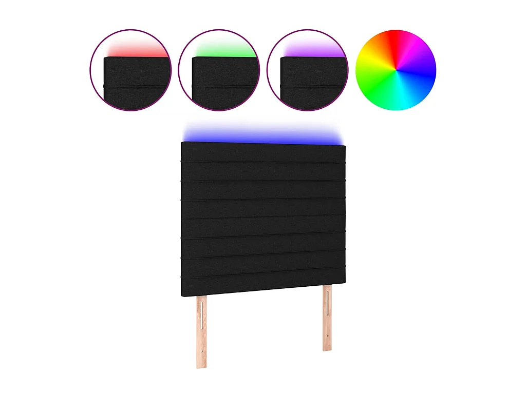 Testiera | Testata del letto a LED nero 90x5x118/128 cm in Tessuto
