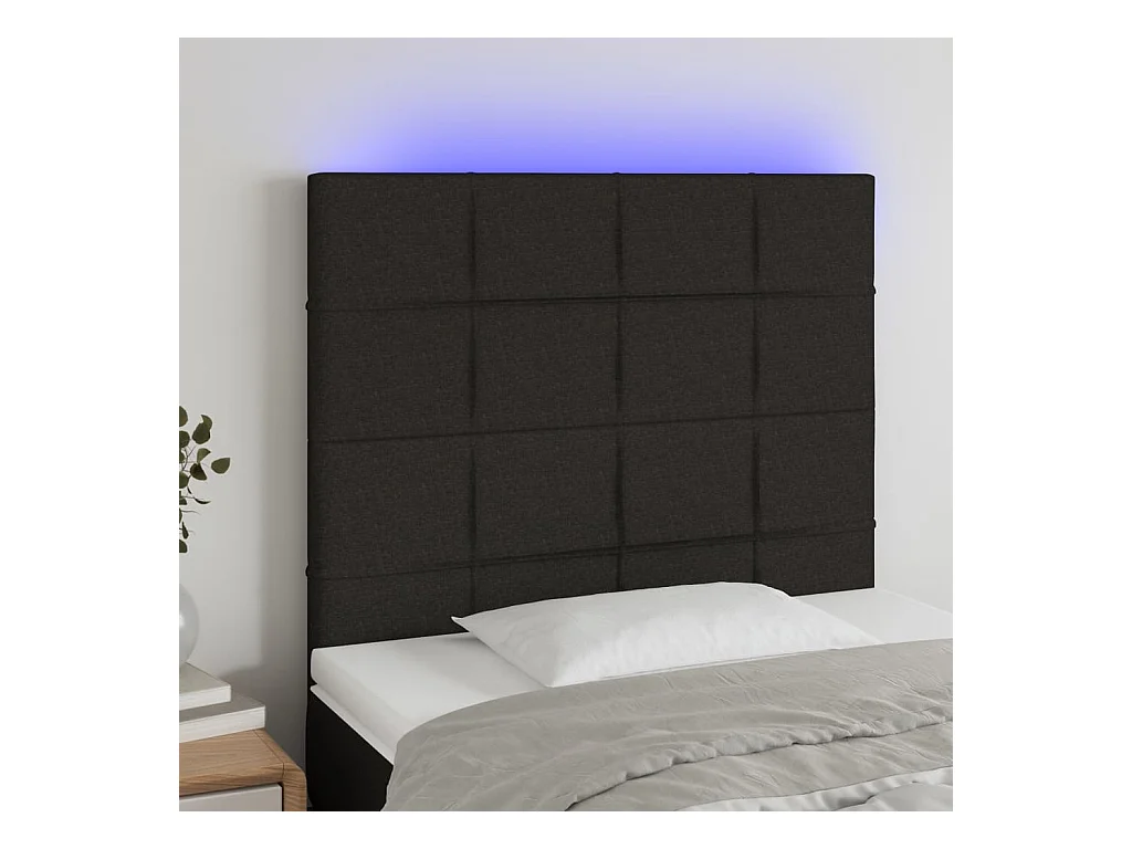 Testiera | Testata del letto a LED Nera 100x5x78/88 cm in Tessuto