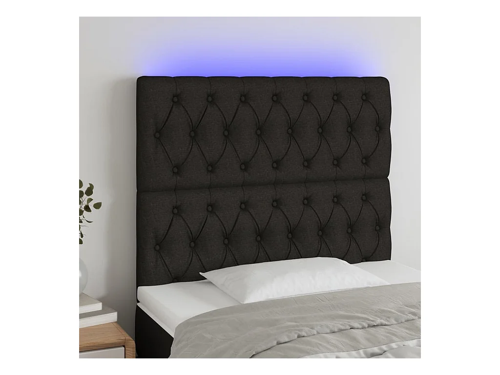 Testiera | Testata del letto a LED nero 90x7x118/128cm in Tessuto