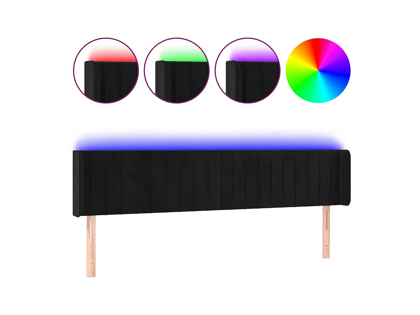Testiera | Testata del letto a LED Nera 183x16x78/88 cm in Velluto