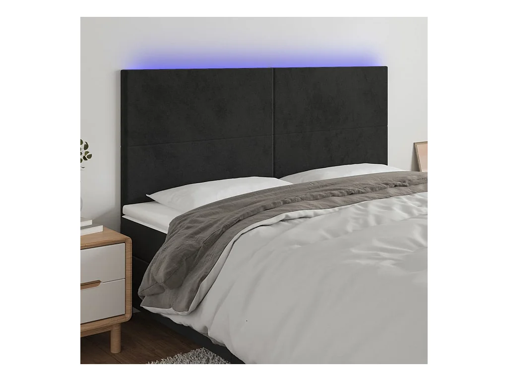 Testiera | Testata del letto a LED Nera 200x5x78/88 cm in Velluto