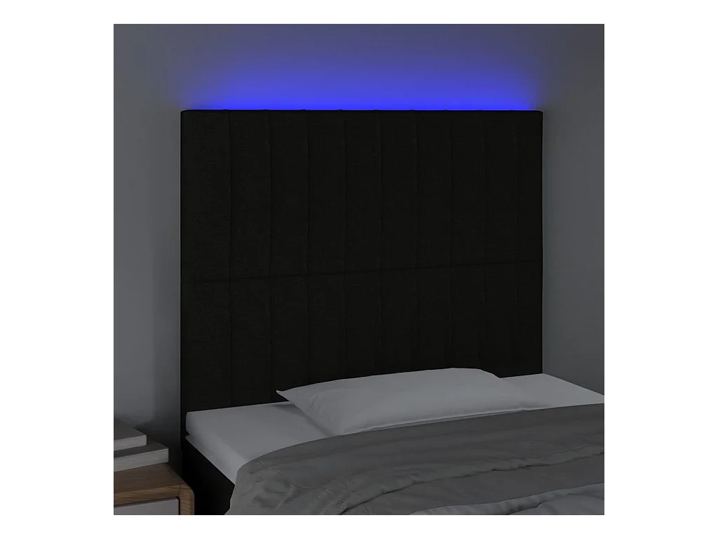 Testiera | Testata del letto a LED nero 90x7x118/128cm in Tessuto