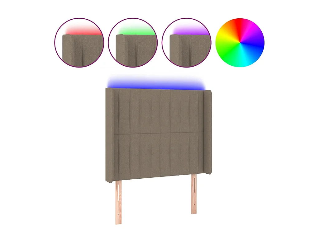 Testiera | Testata del letto a LED tortora 93x16x118/128 cm in Tessuto