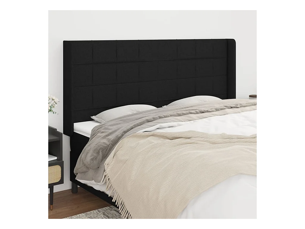 Testiera | Testata del letto ad Orecchio Nera 203x16x118/128 cm in Tessuto