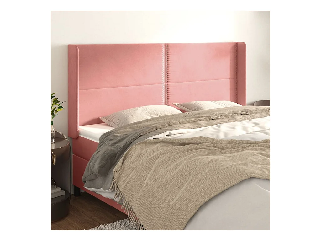 Testiera | Testata del letto ad Orecchio Rosa 183x16x118/128 cm in Velluto