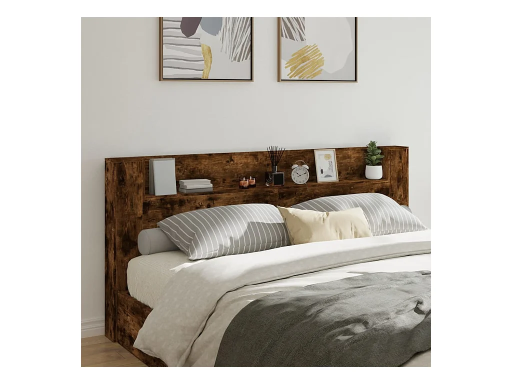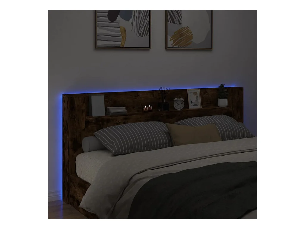 Testiera | Testata del letto con Contenitore a LED Rovere Fumo 180x17x102 cm