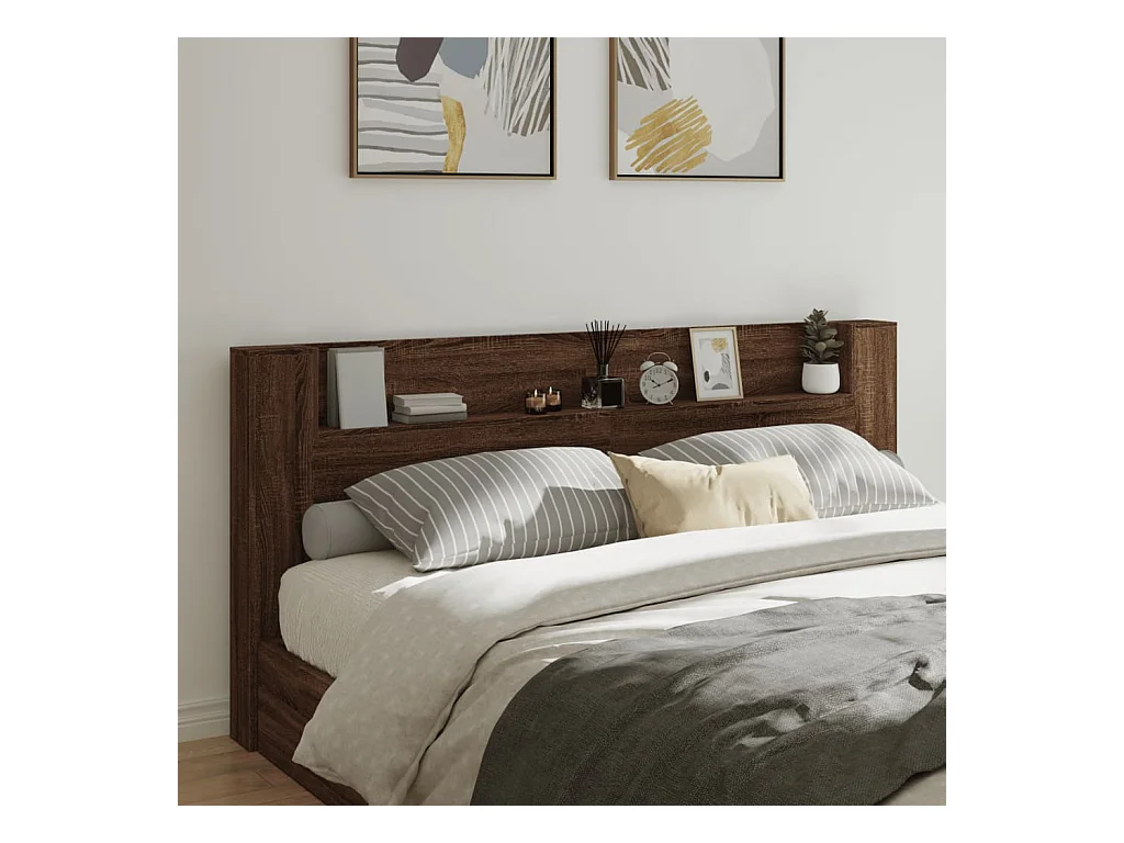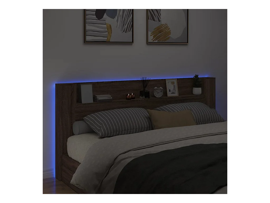 Testiera | Testata del letto con Contenitore a LED Rovere Sonoma 180x17x102 cm