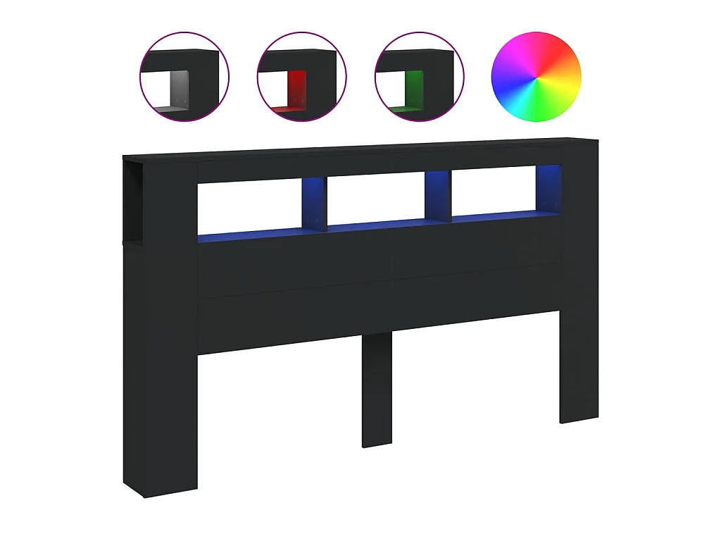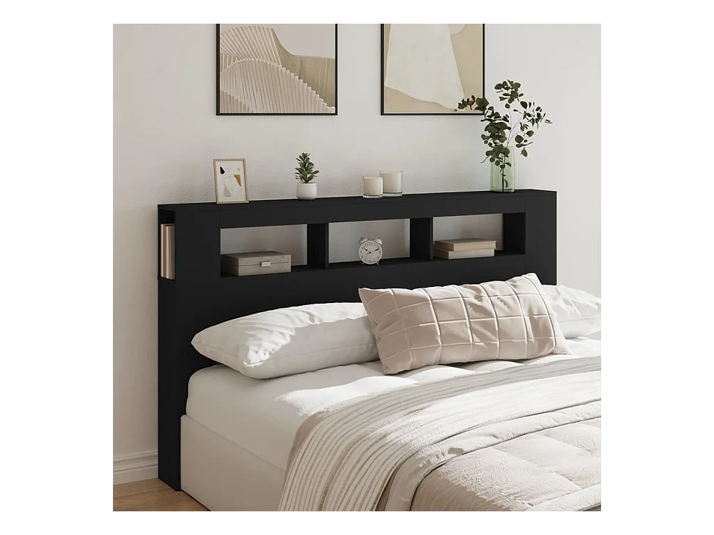 Testiera | Testata del letto LED Nera 180x18,5x103,5 cm Legno Multistrato