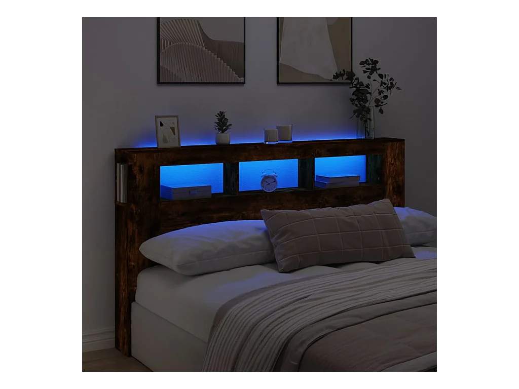 Testiera | Testata del letto LED Rovere Fumo 180x18,5x103,5 cm Legno Multistrato