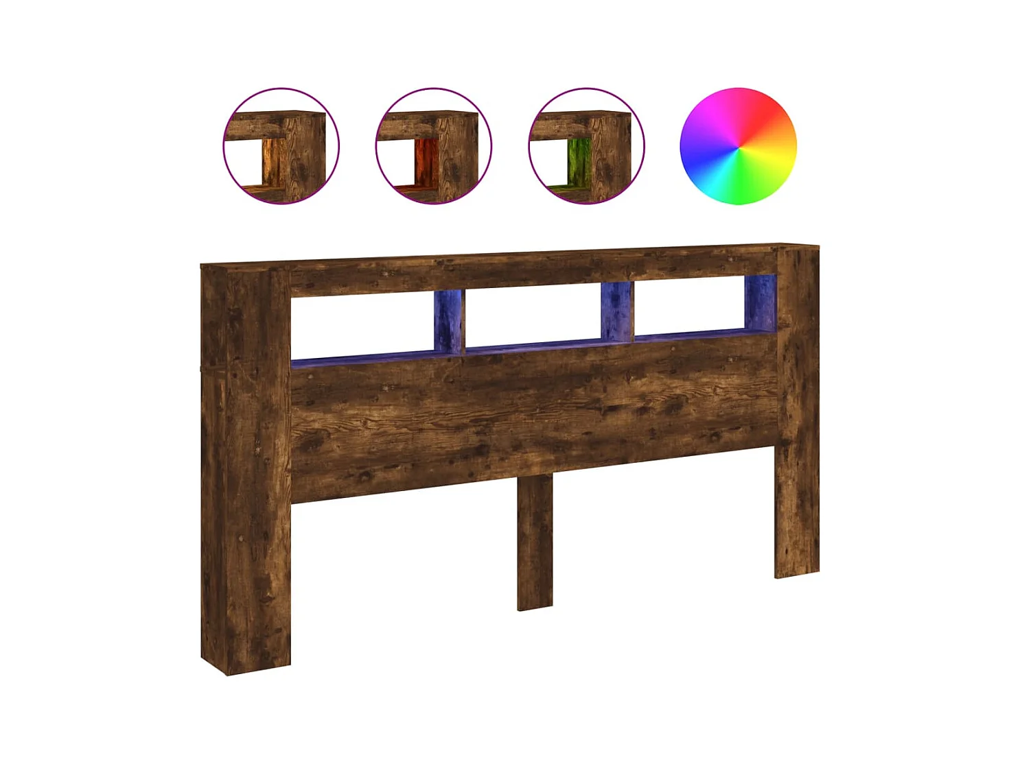 Testiera | Testata del letto LED Rovere Fumo 180x18,5x103,5 cm Legno Multistrato