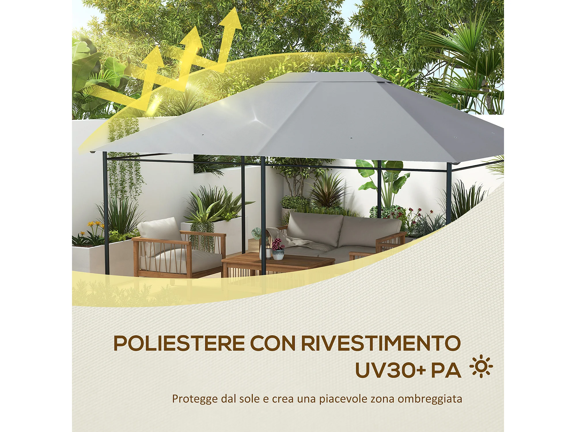 Tetto di ricambio per gazebo 4x3m anti uv in poliestere grigio chiaro