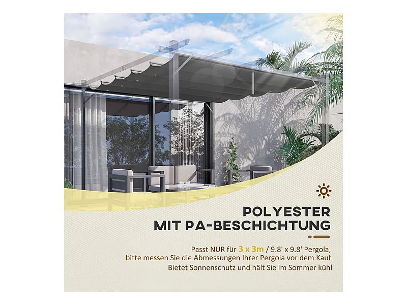 Tetto di ricambio per pergola 3x3m, telo di ricambio, con 10 fori di drenaggio pioggia, poliestere 180 g/m² - Grigio