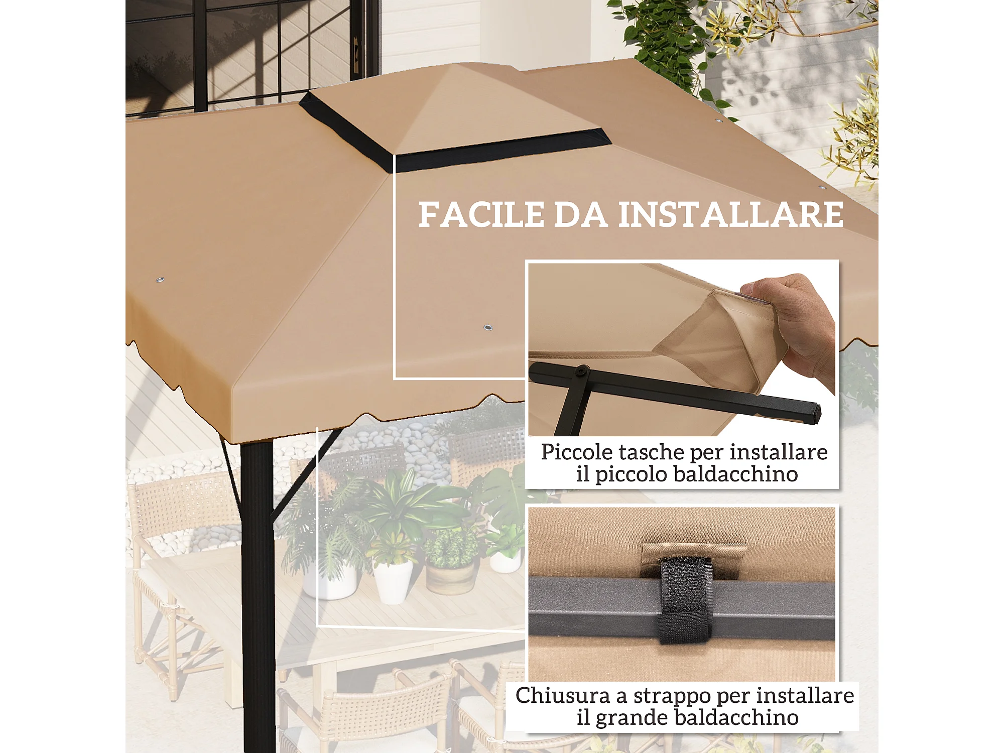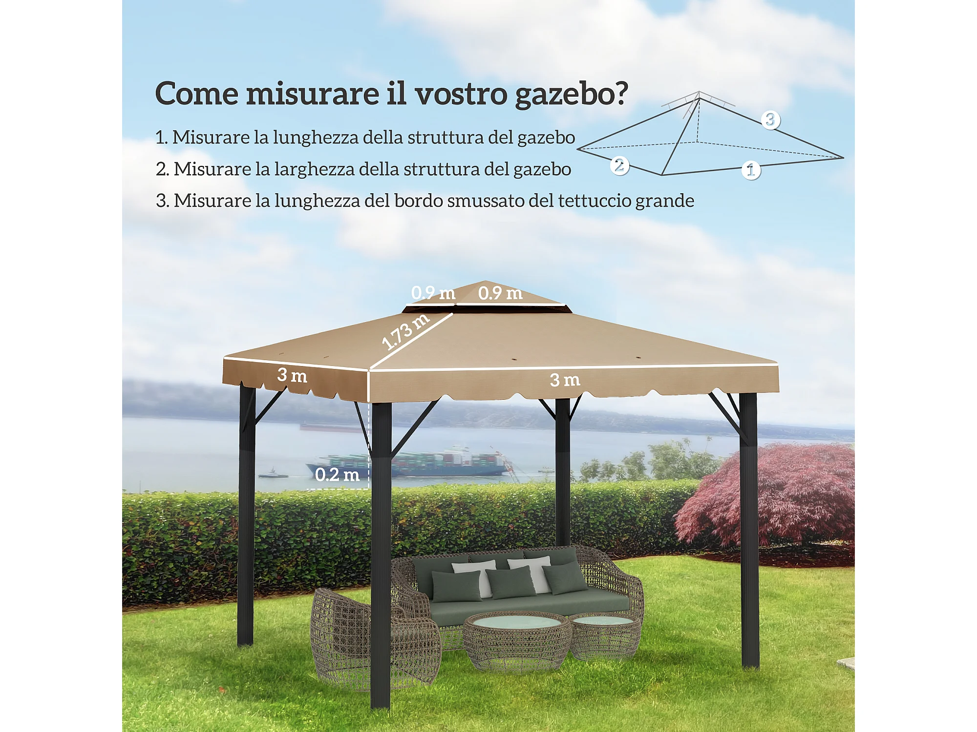 Tetto per gazebo 3x3 m con tetto a 2 livelli in poliestere cachi