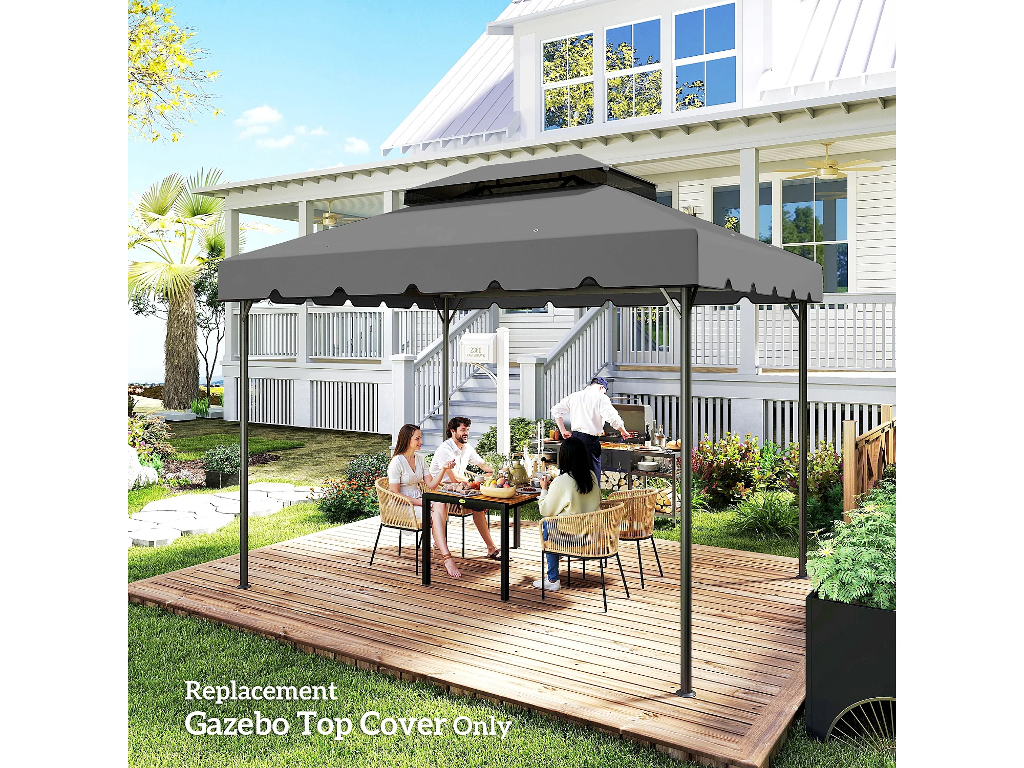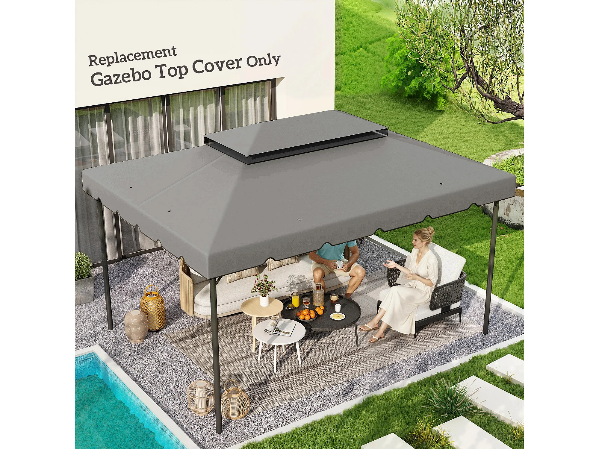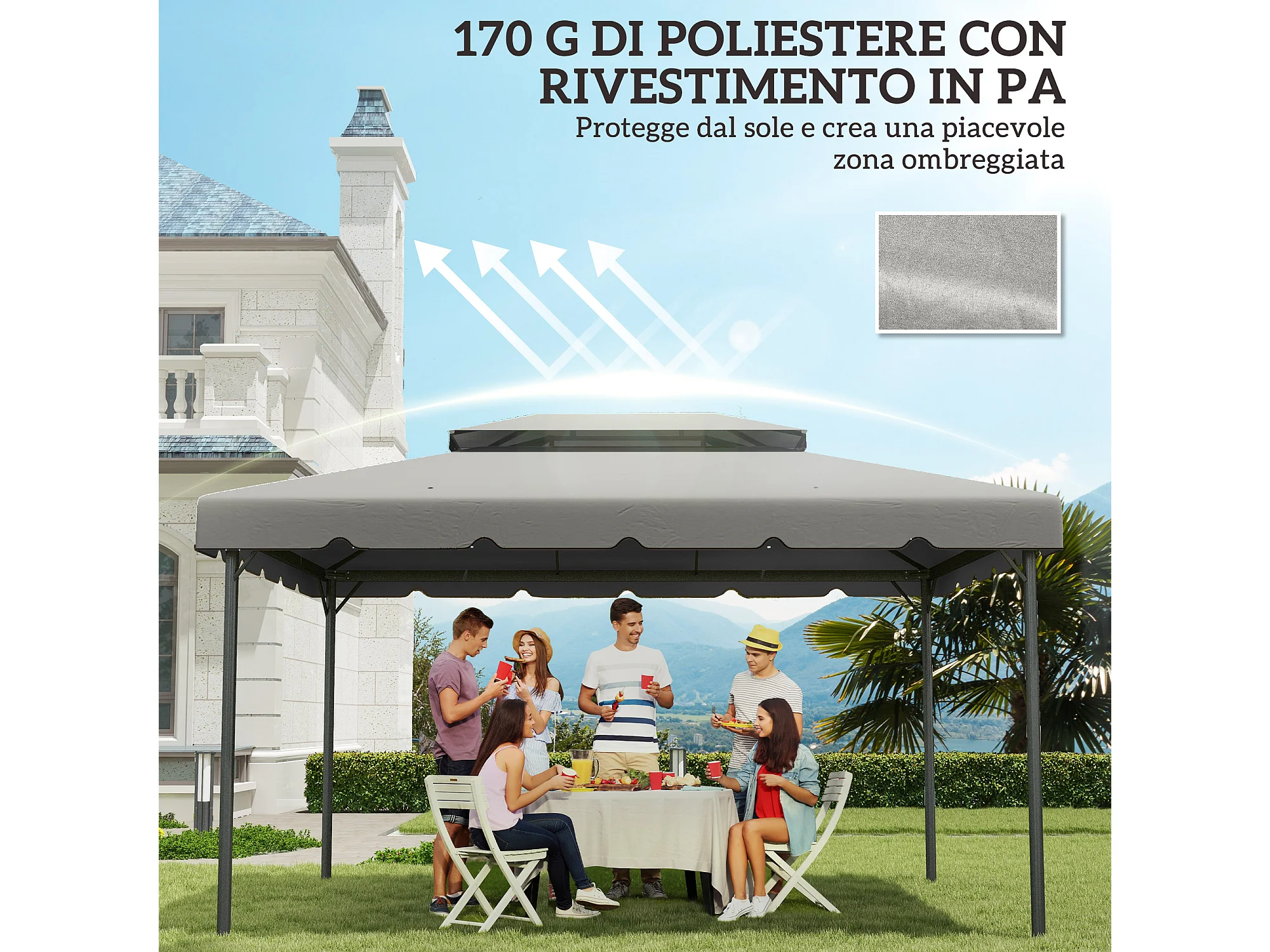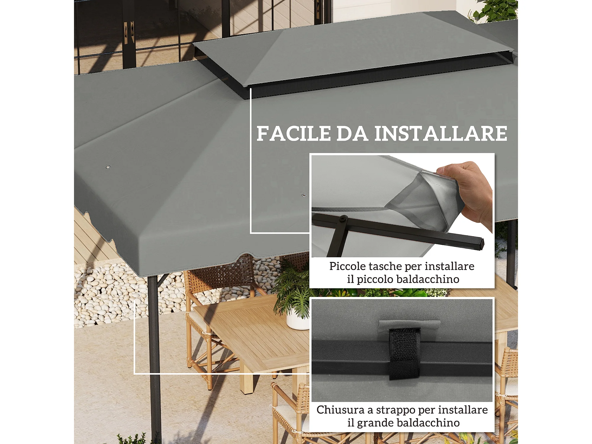 Tetto per gazebo 3x4 m con tetto 2 livelli in poliestere grigio chiaro