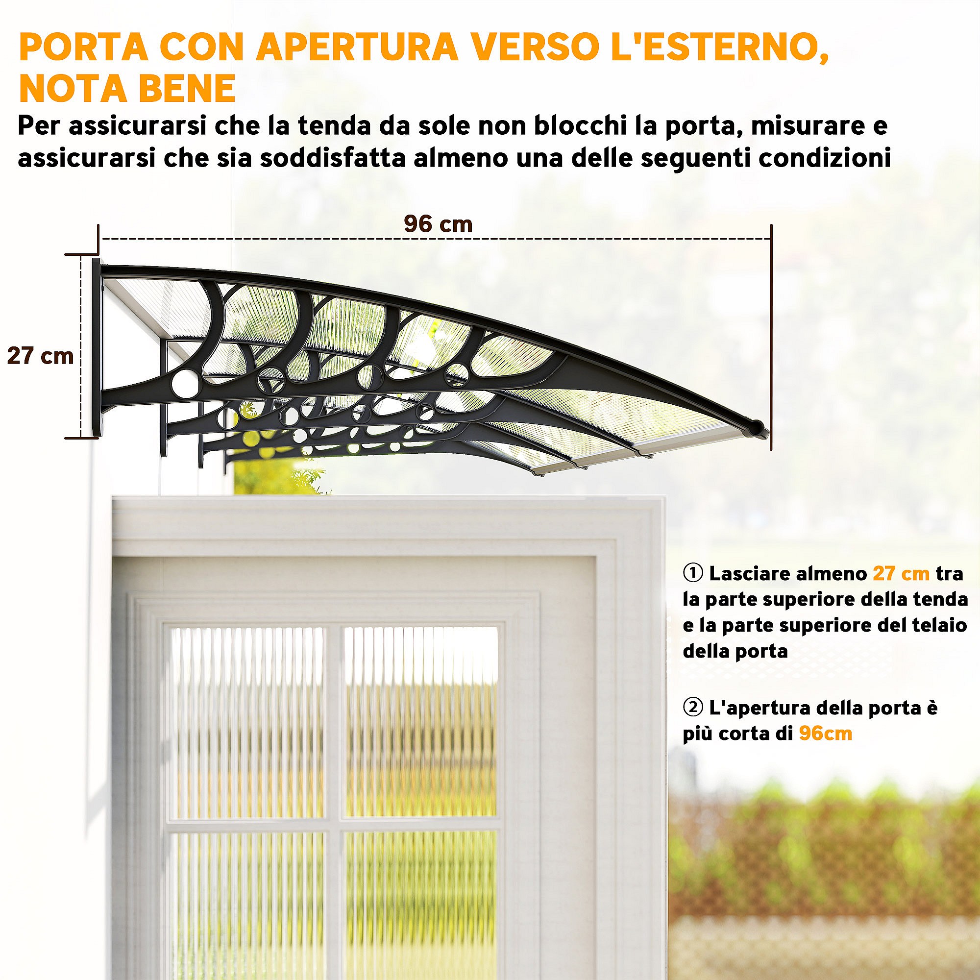 Tettoia in policarbonato e alluminio per finestre e porte 303x96x27 cm
