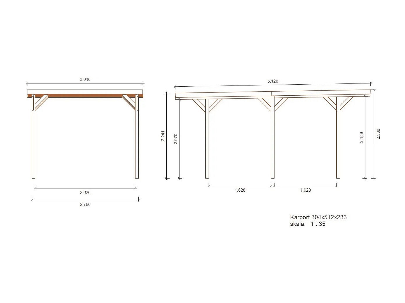 Tettoia posto auto coperto in legno 3.04x5.12 m - 15.57 m2 - CAR16 - ALTANKA