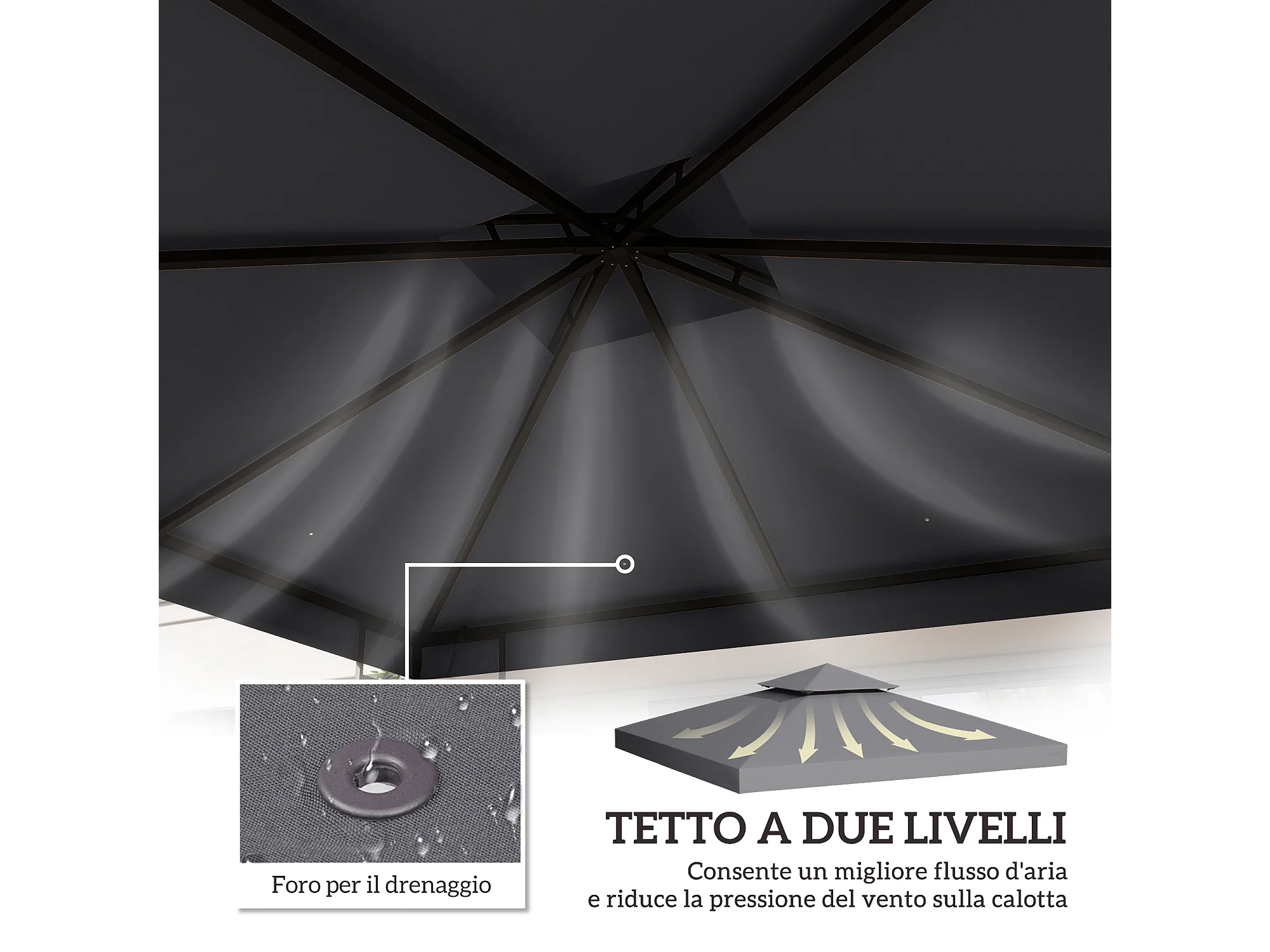 Tettuccio di ricambio per gazebo 3x3m a 2 livelli grigio scuro