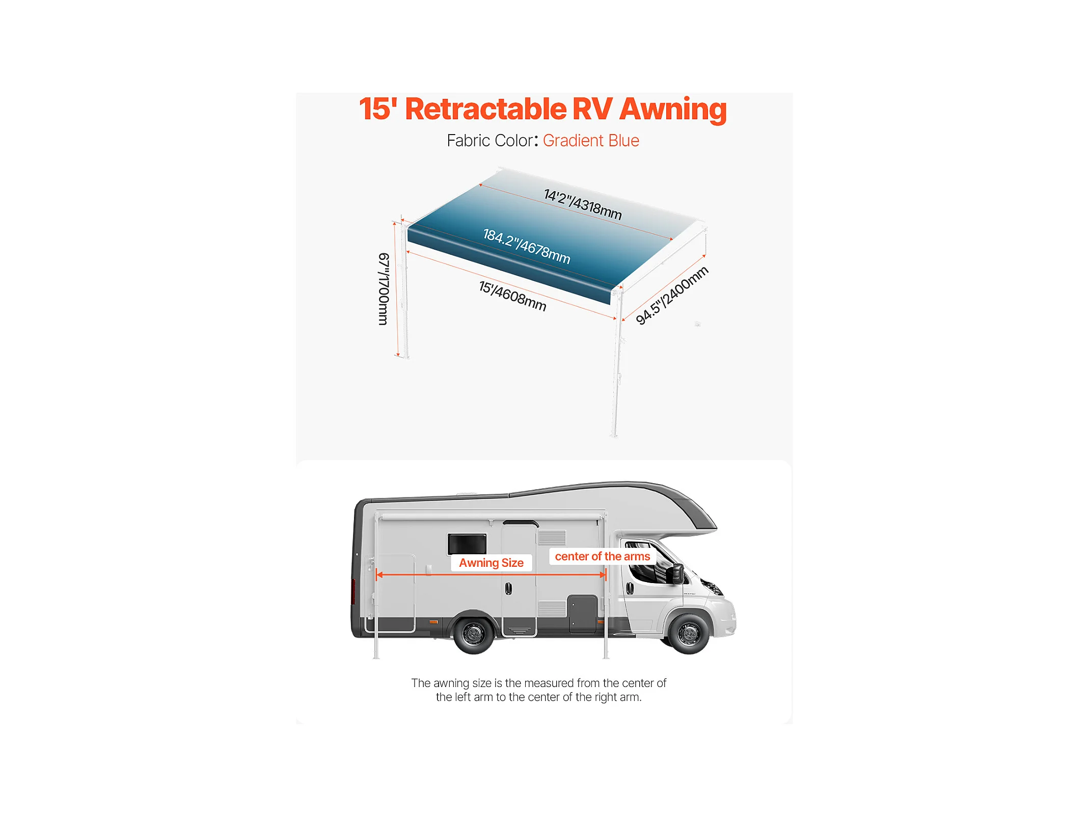 Tettuccio per Auto SucceBuy Tendalino di Ricambio da 457 cm per Camper - Tendalino Manuale per la Maggior Parte dei Camper a 12V CC