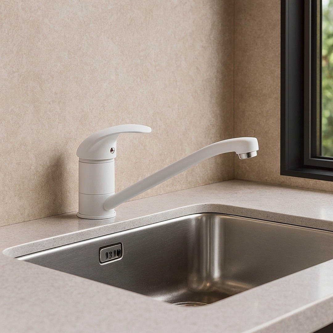 Miscelatore da cucina flessibile bianco, rubinetto da cucina, girevole a 360°, miscelatore d'Lavello con tubo flessibile in silicone,