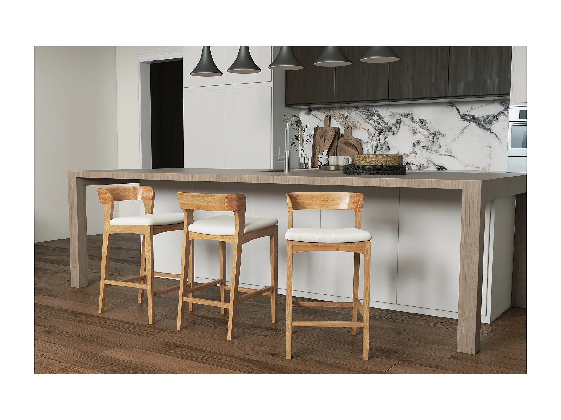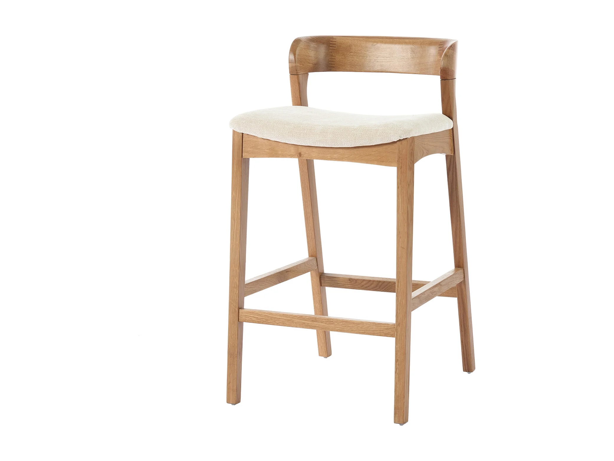 TINO-Sgabello da bar in rovere massello e tessuto Bliss Ecru