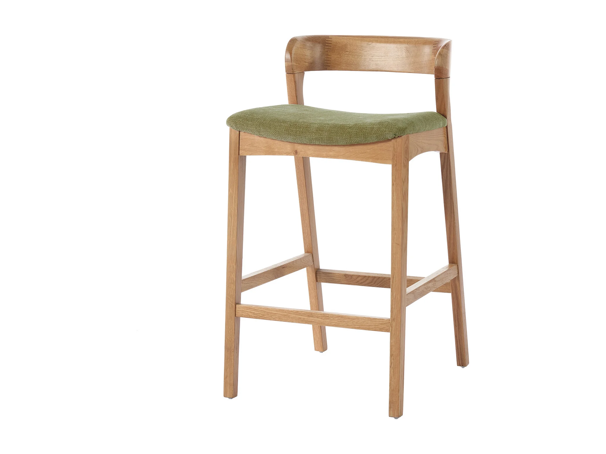 TINO-Sgabello da bar in rovere massello e tessuto Bliss Verde