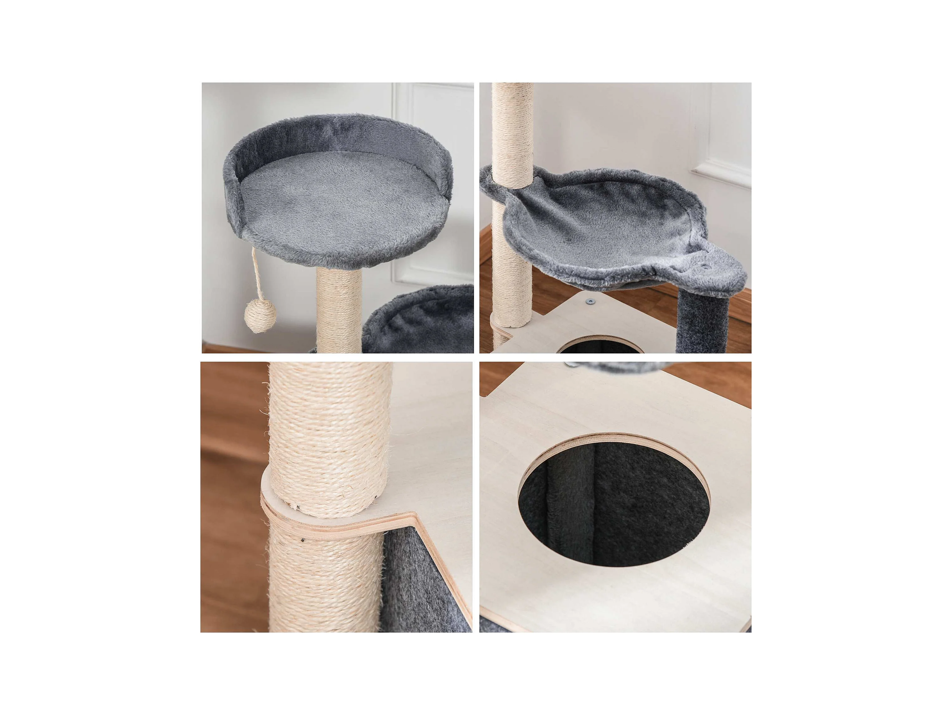 Tiragraffi multilivello con casetta amaca cuccia e corde sisal 48x34x95cm