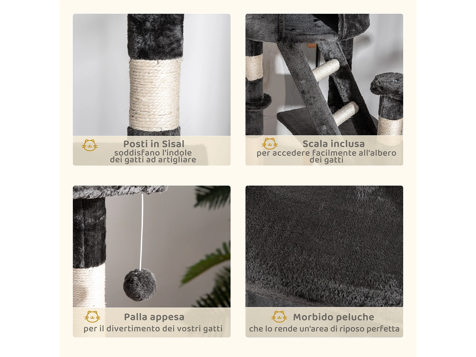 Albero tiragraffi per gatti con cuccia e cuscino rivestimento peluche