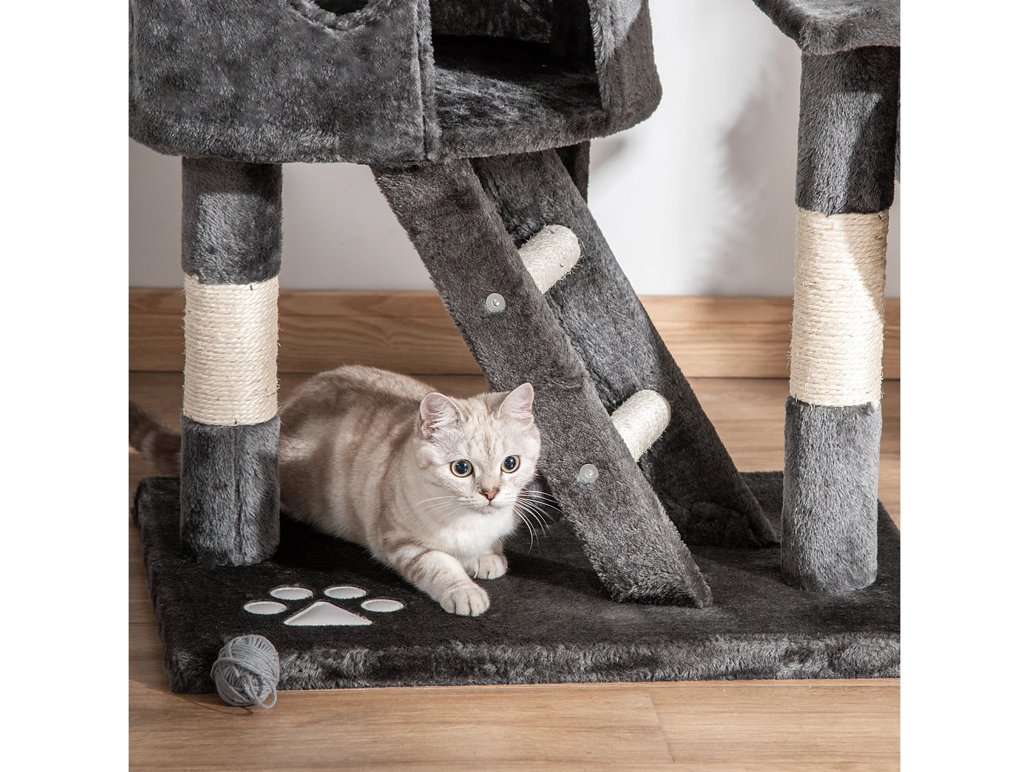 Albero tiragraffi per gatti con casette tunnel amaca e lettino grigio
