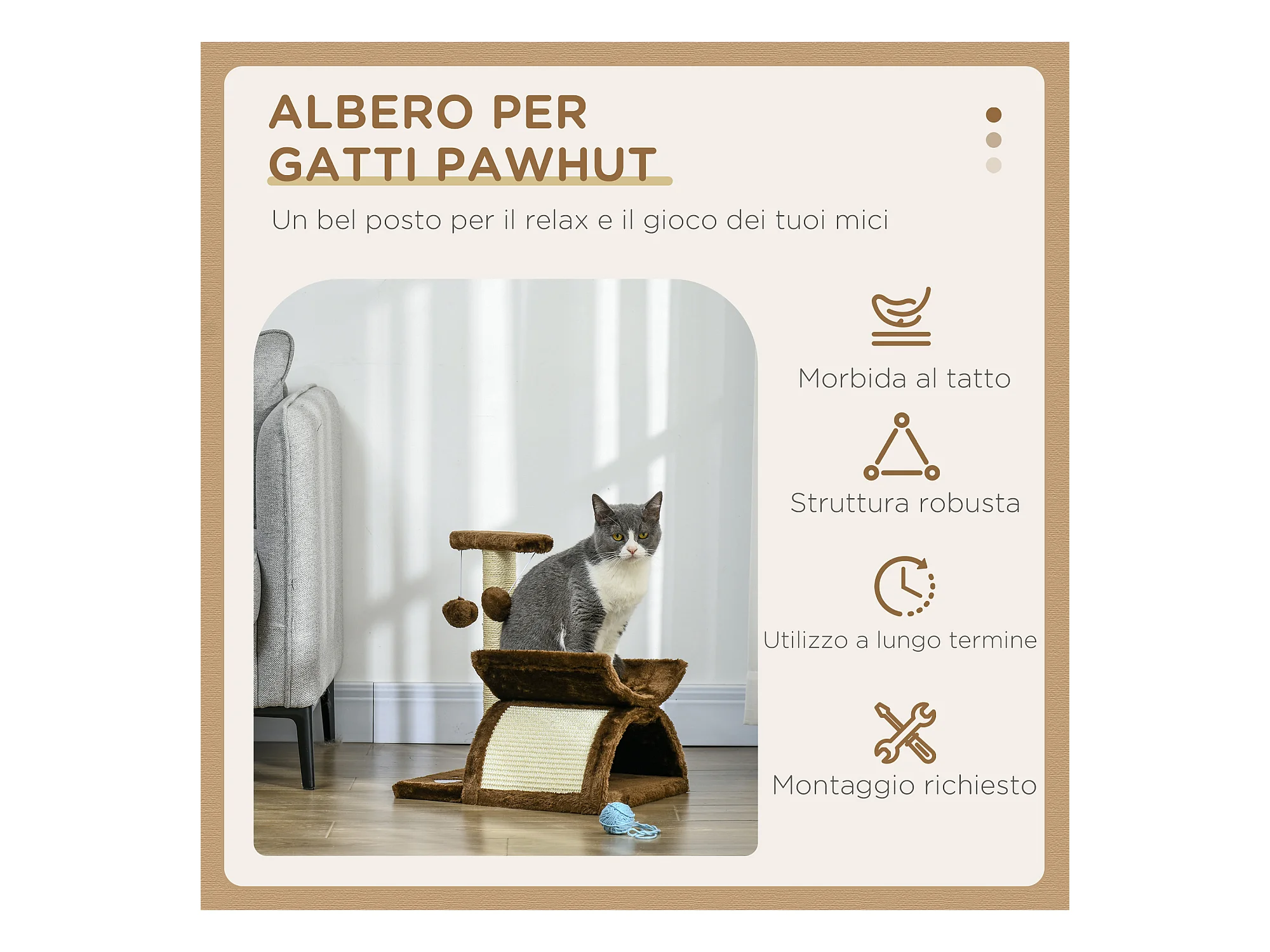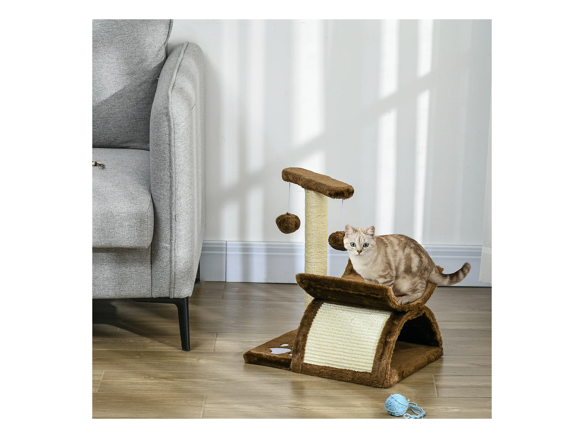 Tiragraffi per gatti 5kg max con lettino e pallina da gioco marrone beige