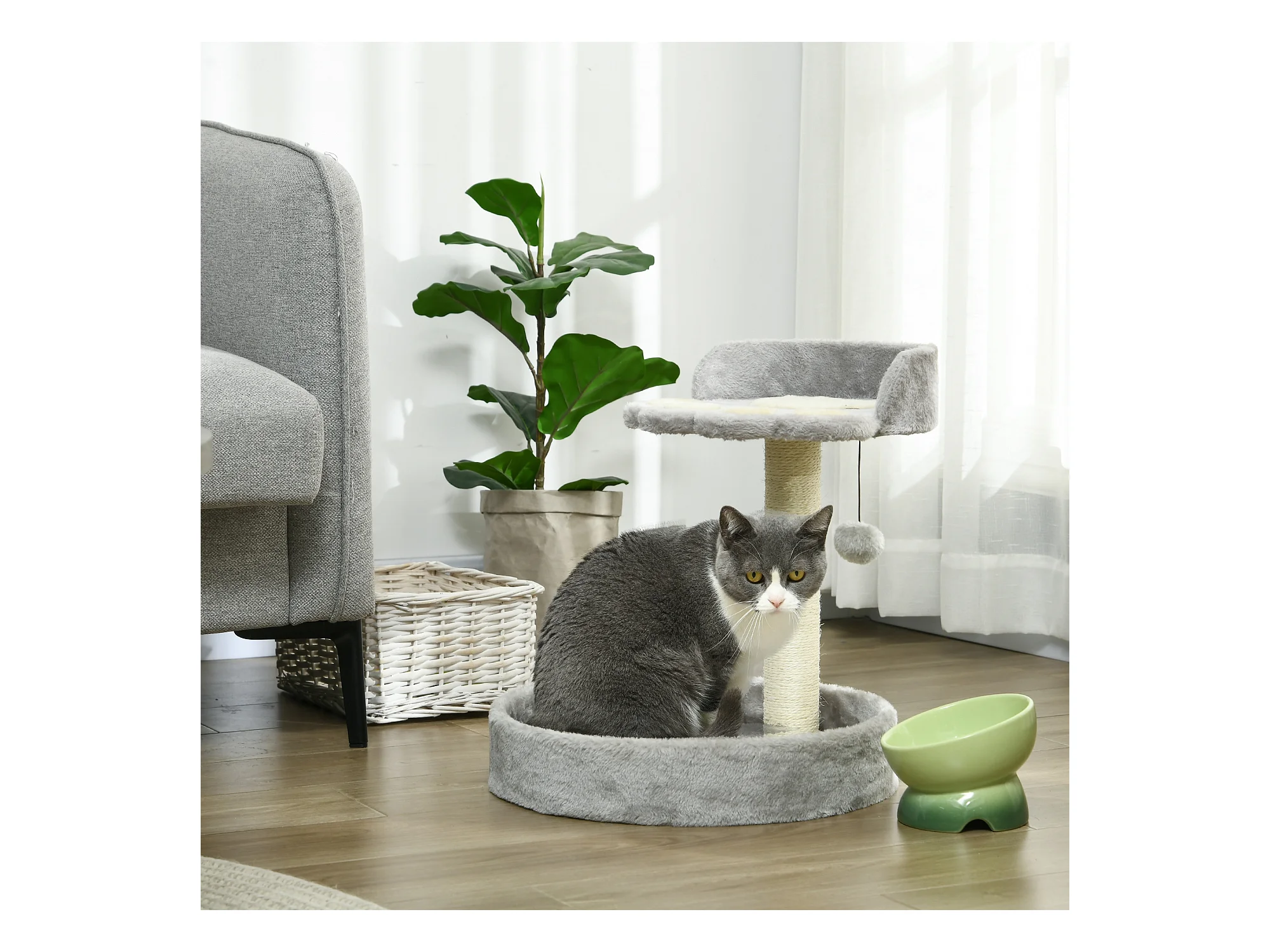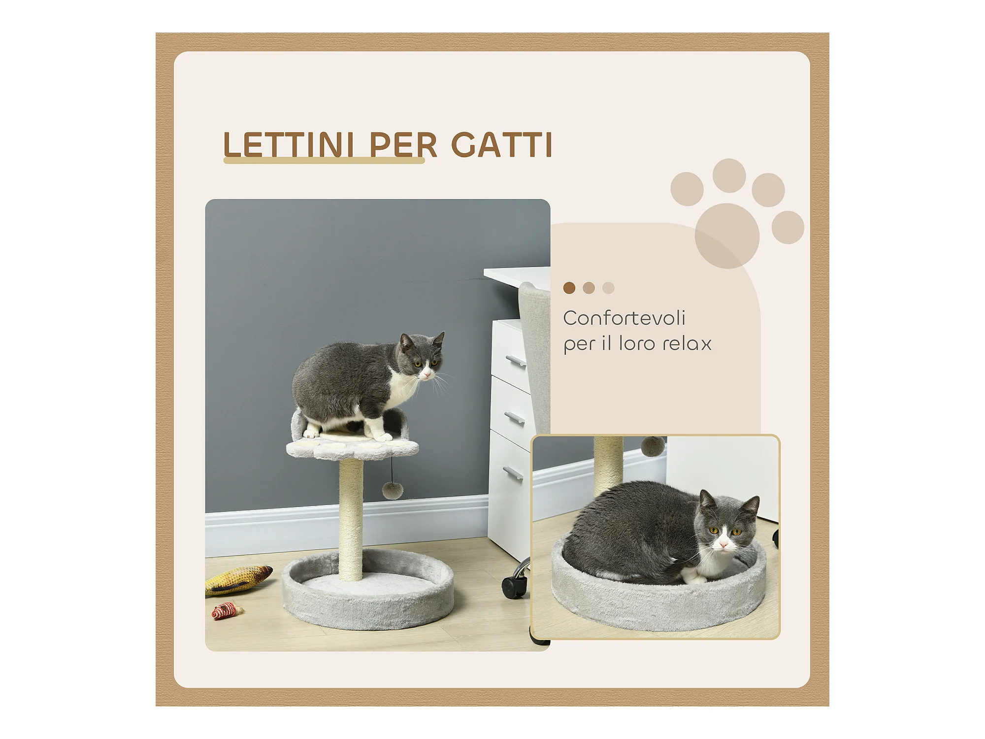 Albero tiragraffi grigio per 1-2 gatti con cuccia lettino e palo in corda