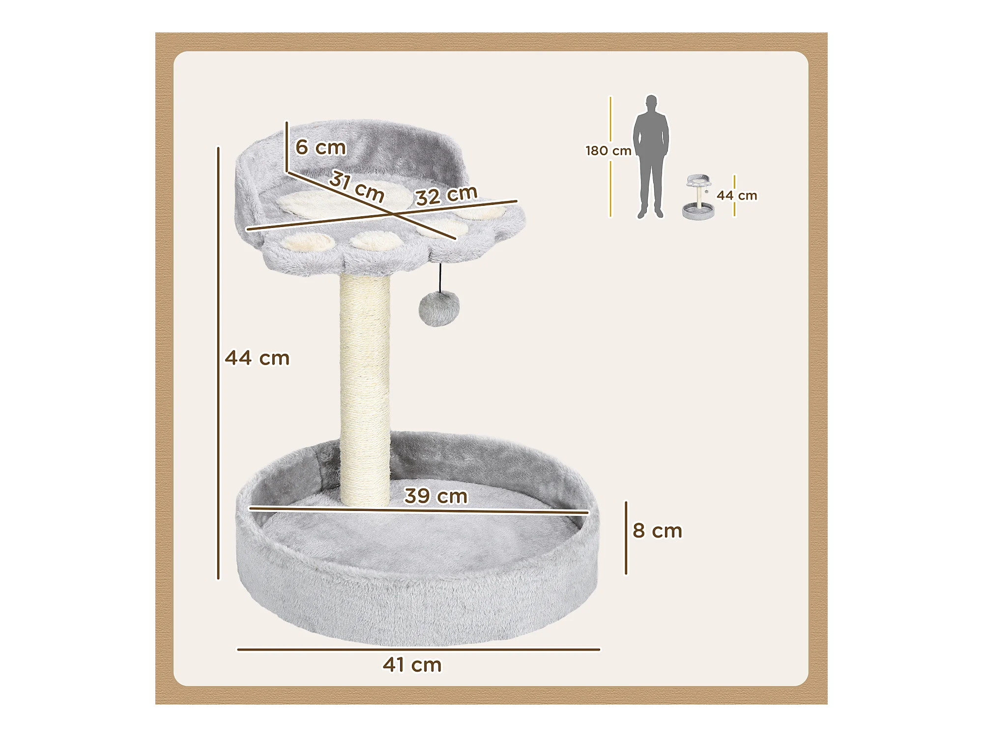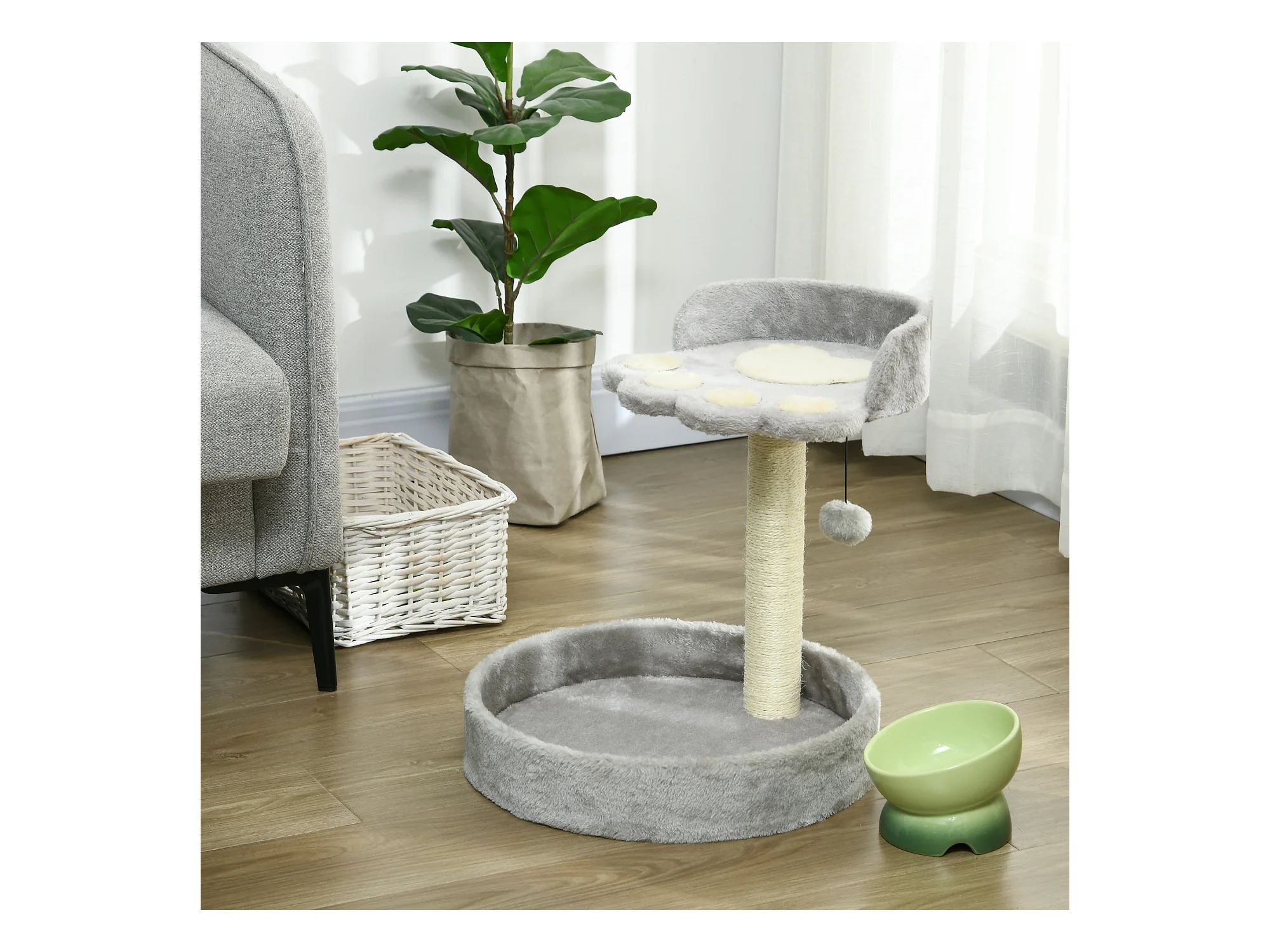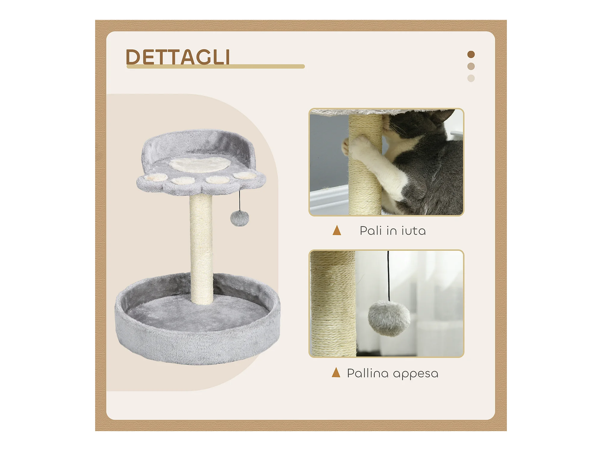 Tiragraffi per gatti con palo in sisal e pallina 41x41x81cm grigio