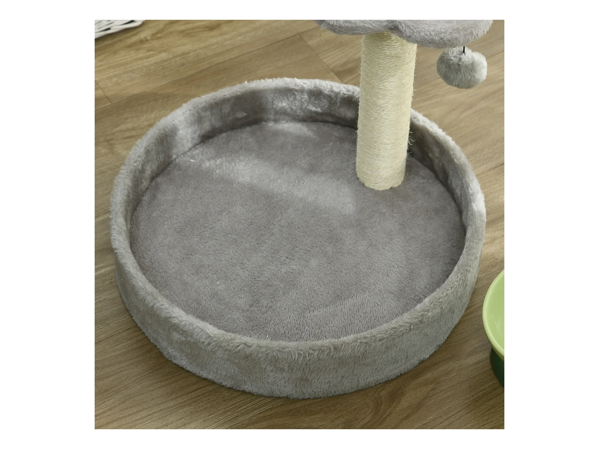 Albero tiragraffi con lettino e casetta rivestimento in peluche grigio