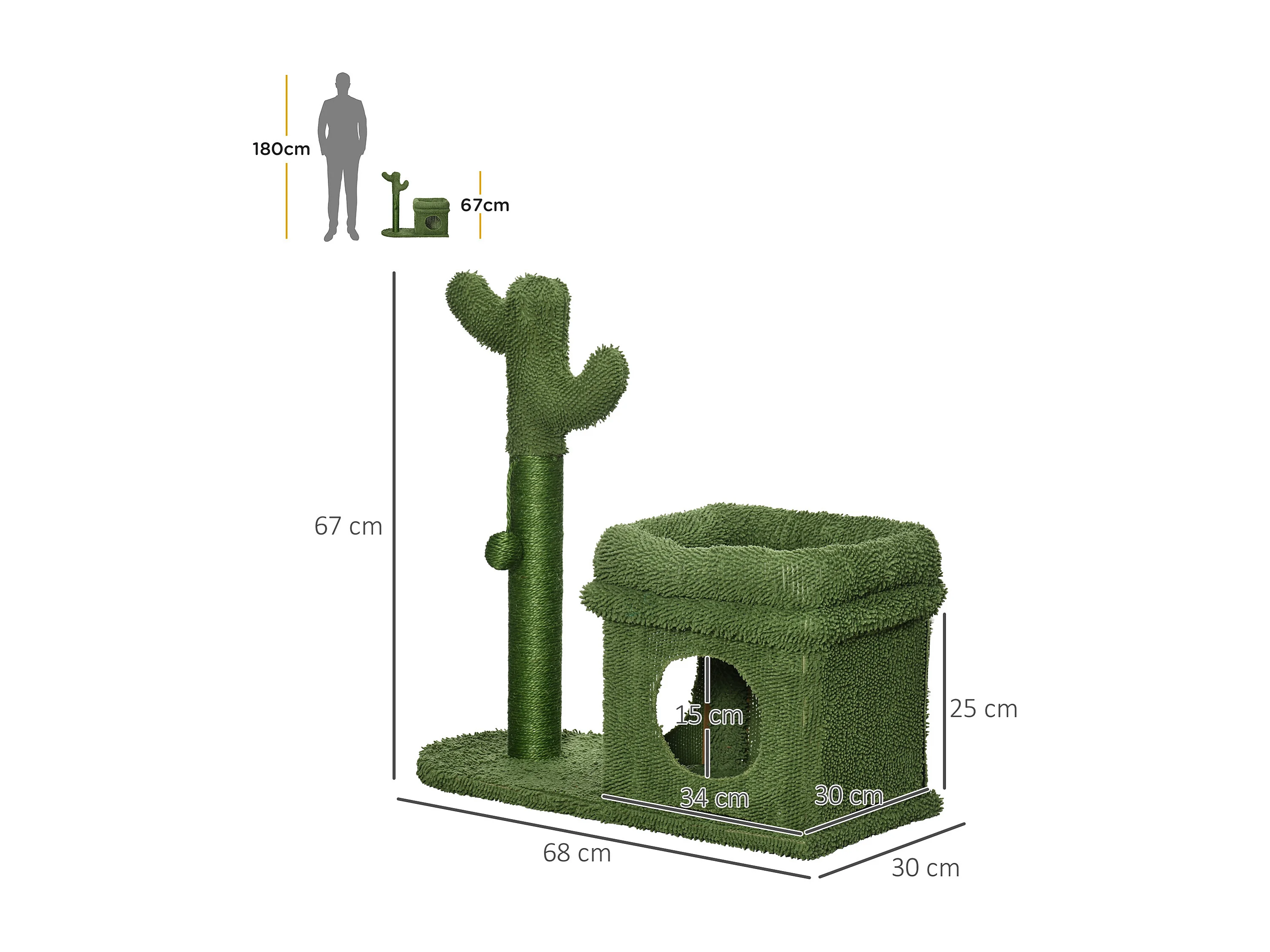 Albero tiragraffi per gatti adulti a forma di cactus 60x35x78cm verde