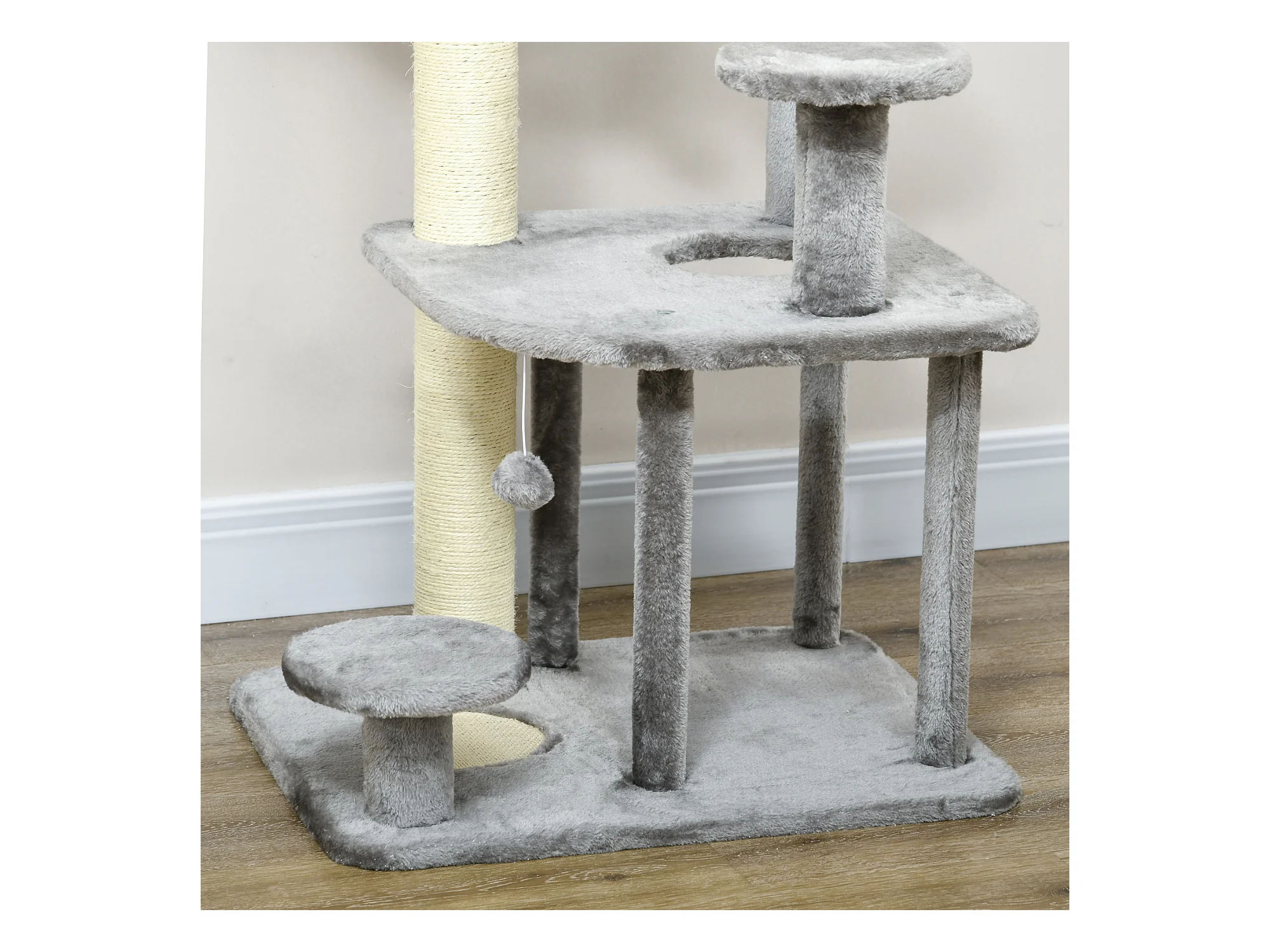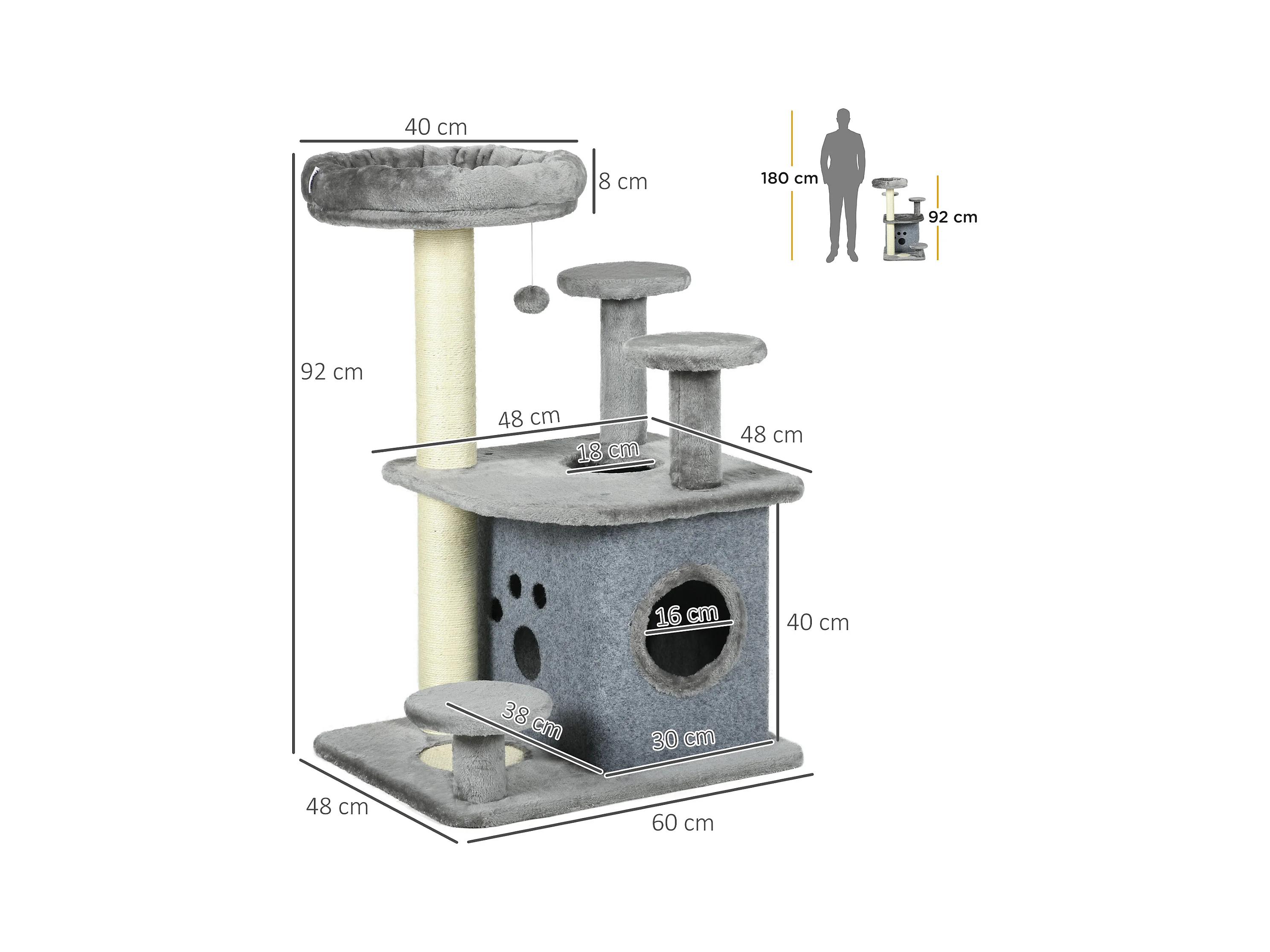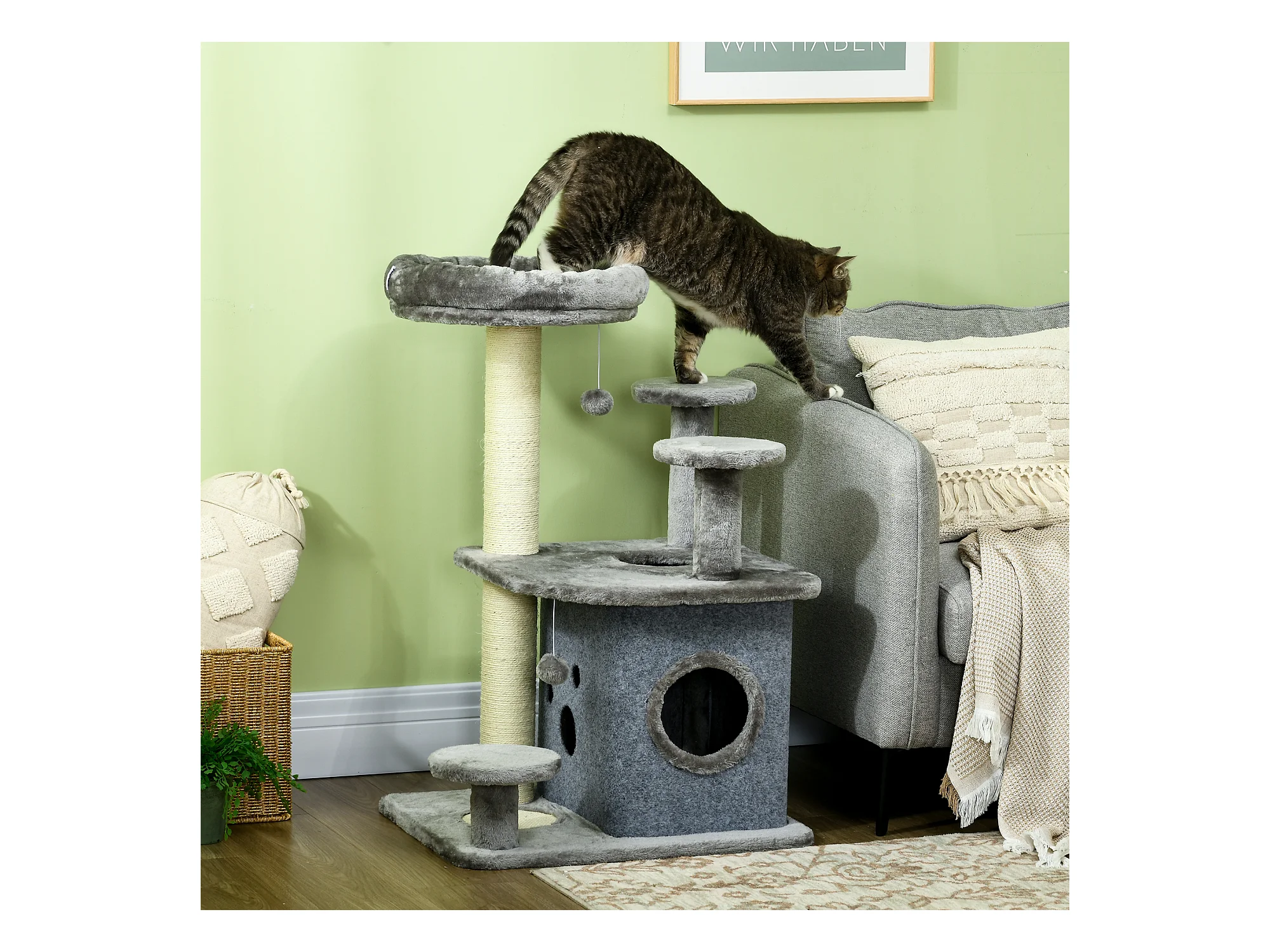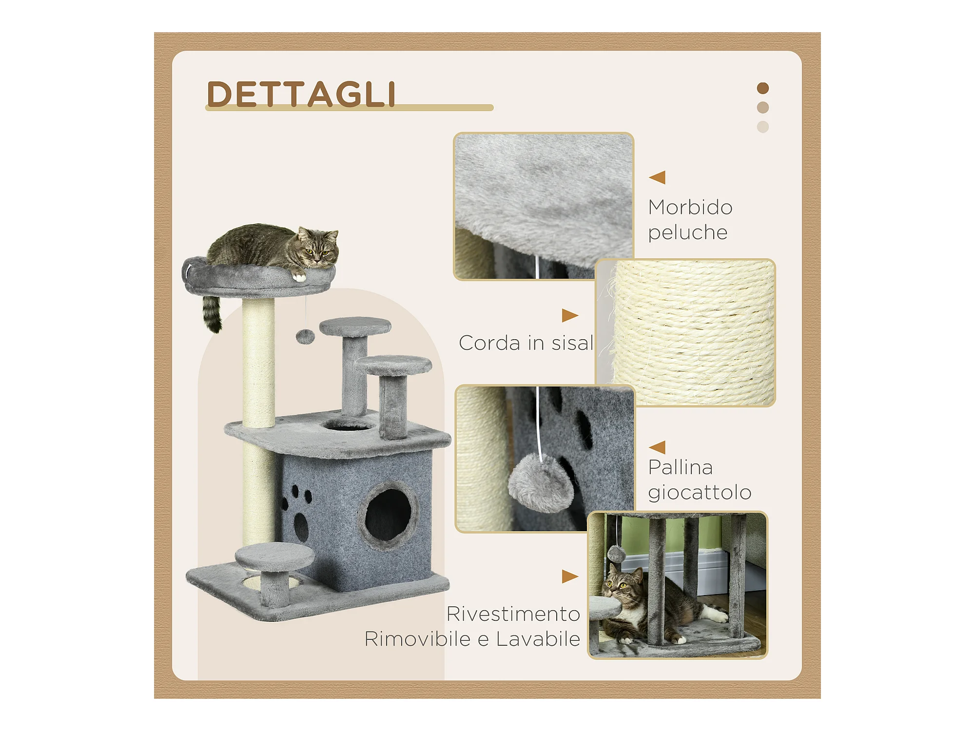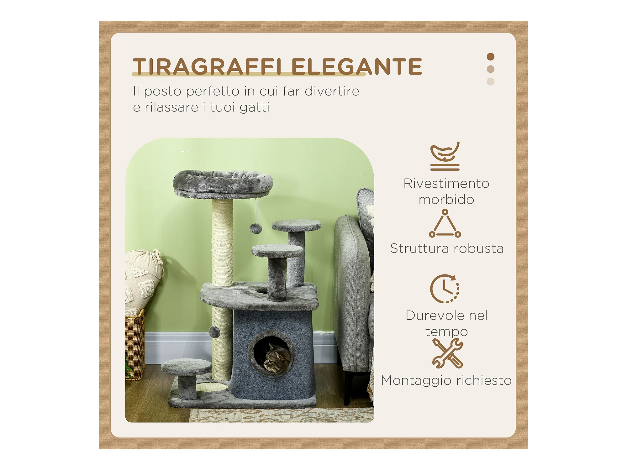 Albero per gatti con tiragraffi casetta letto e pallina giocattolo grigio