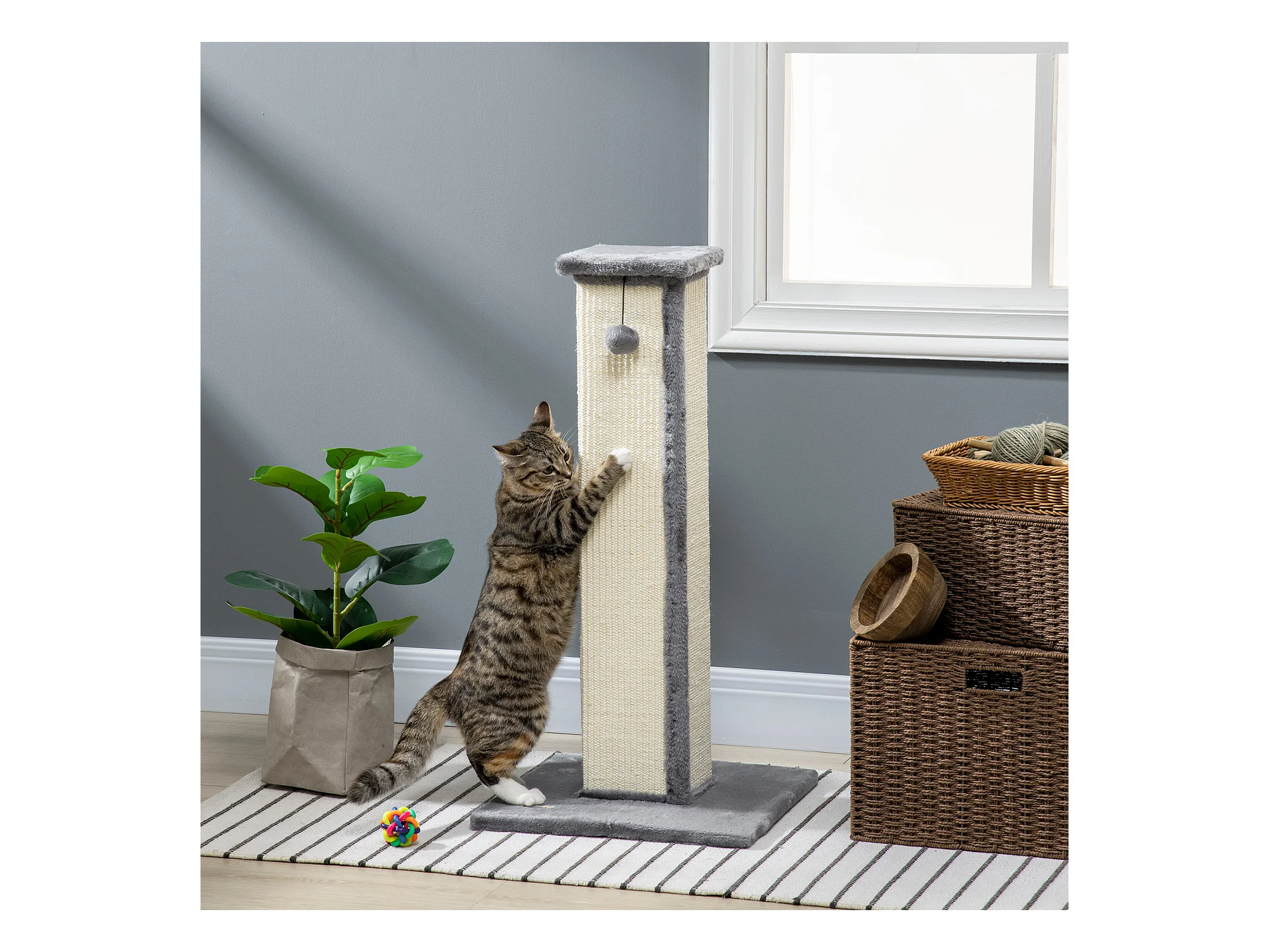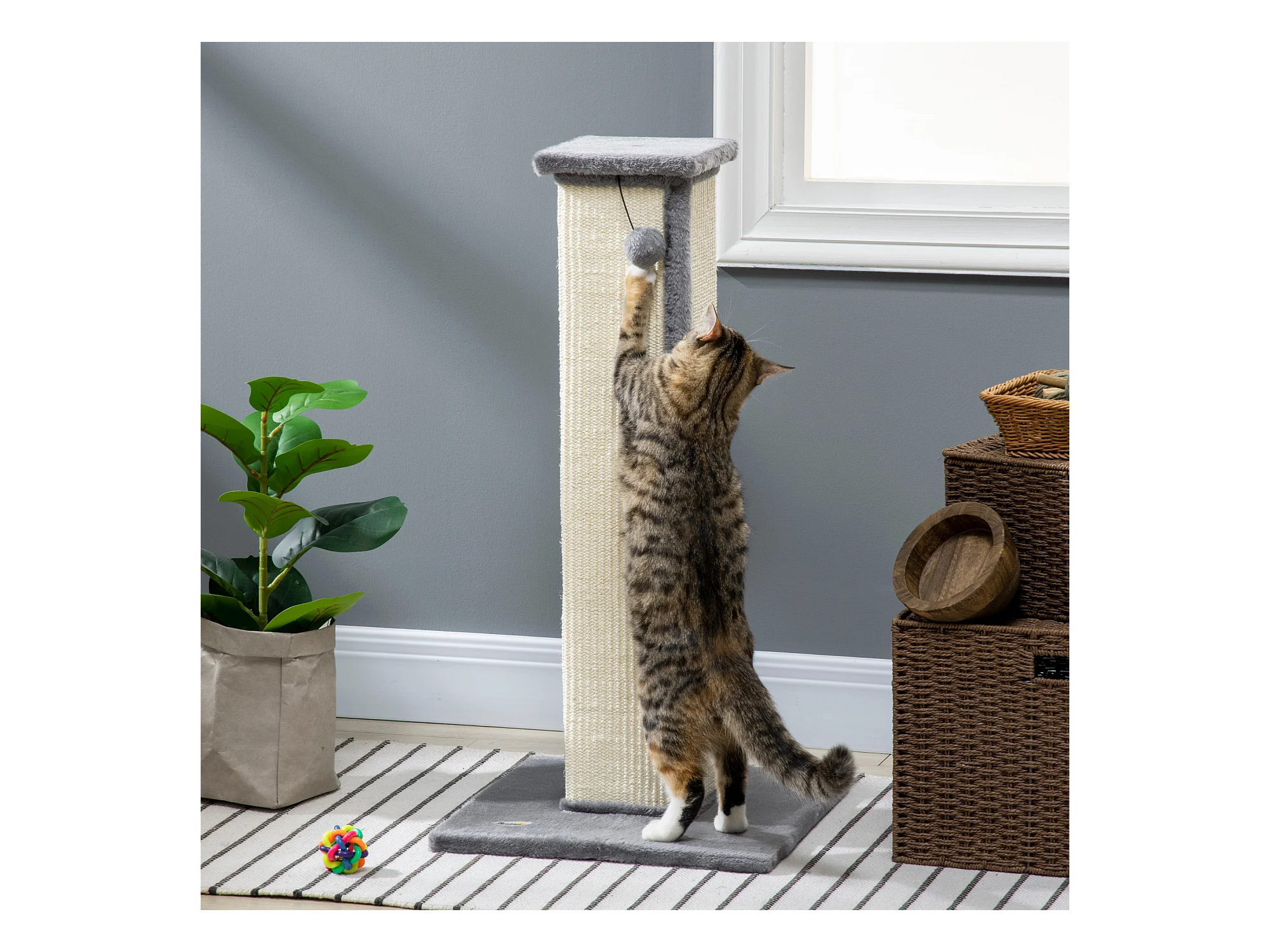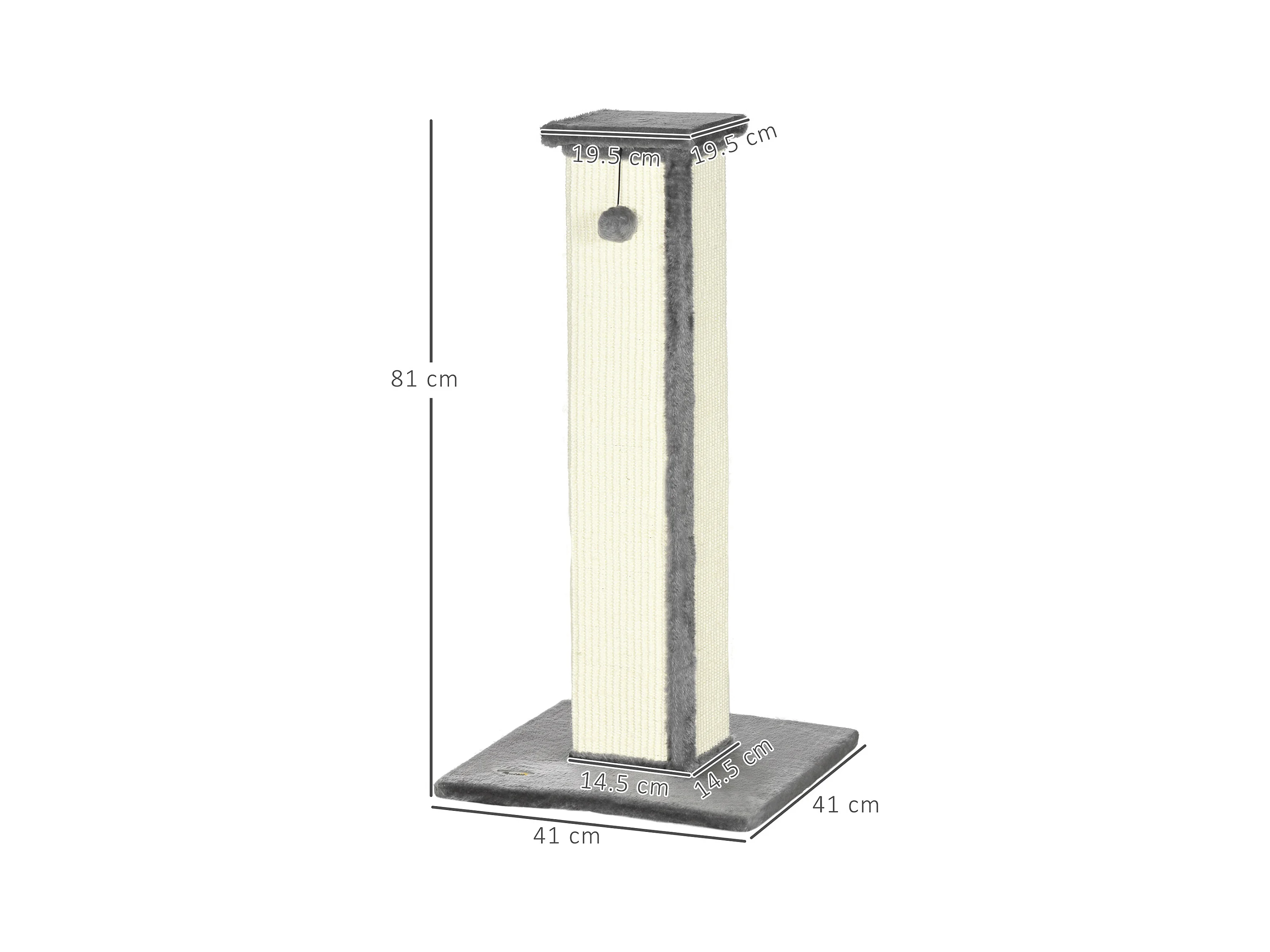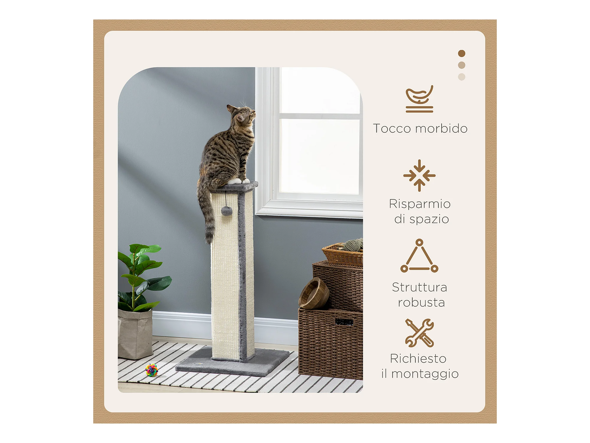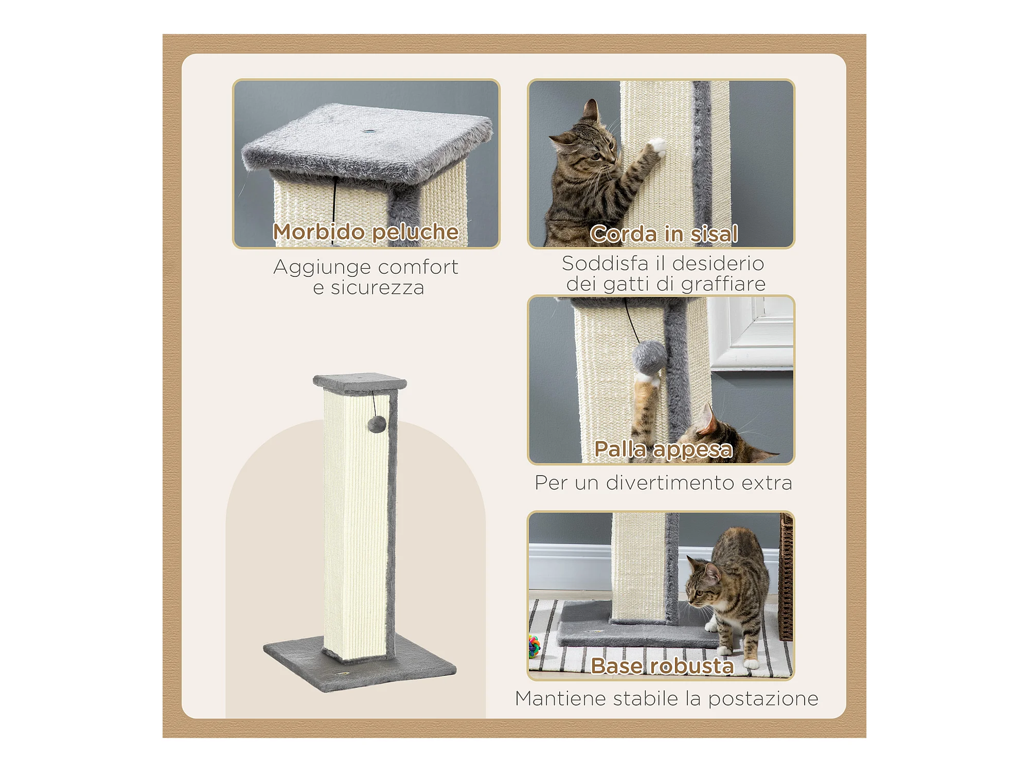 Tiragraffi per gatti con palo in sisal e pallina 41x41x81cm grigio