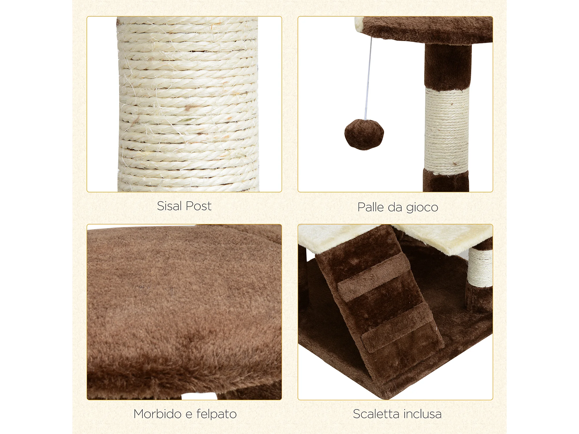Tiragraffi per gatti albero per gatti con cuccia e 4 livelli beige