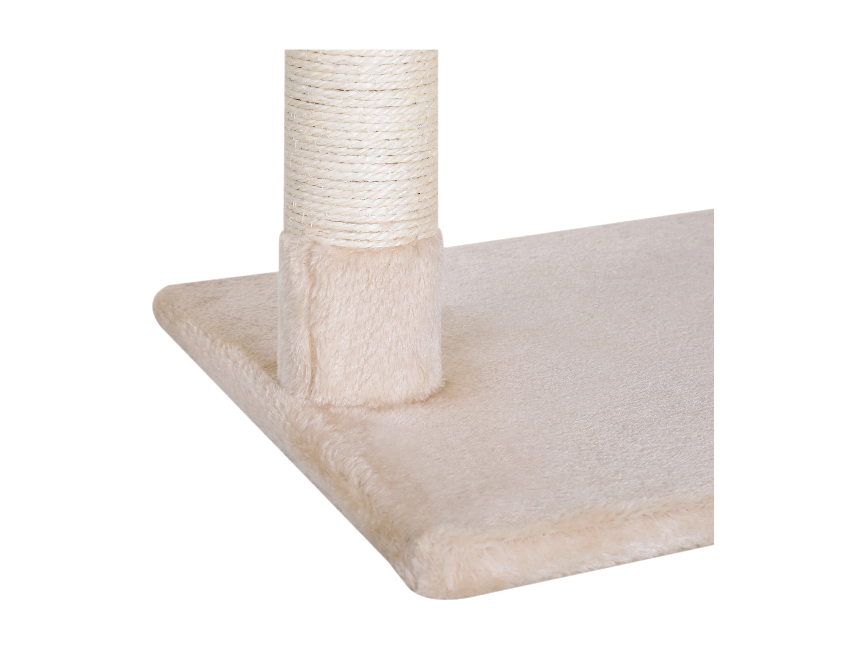 Tiragraffi per gatti con cuccia, pallina e pali in corda sisal, beige