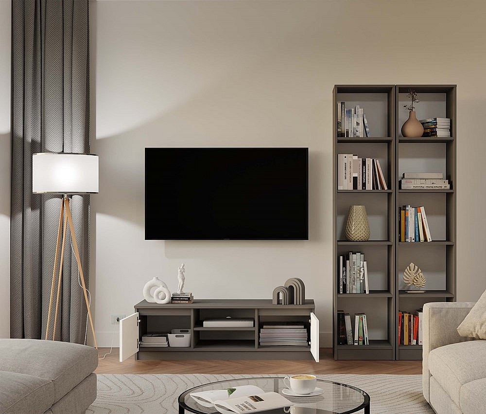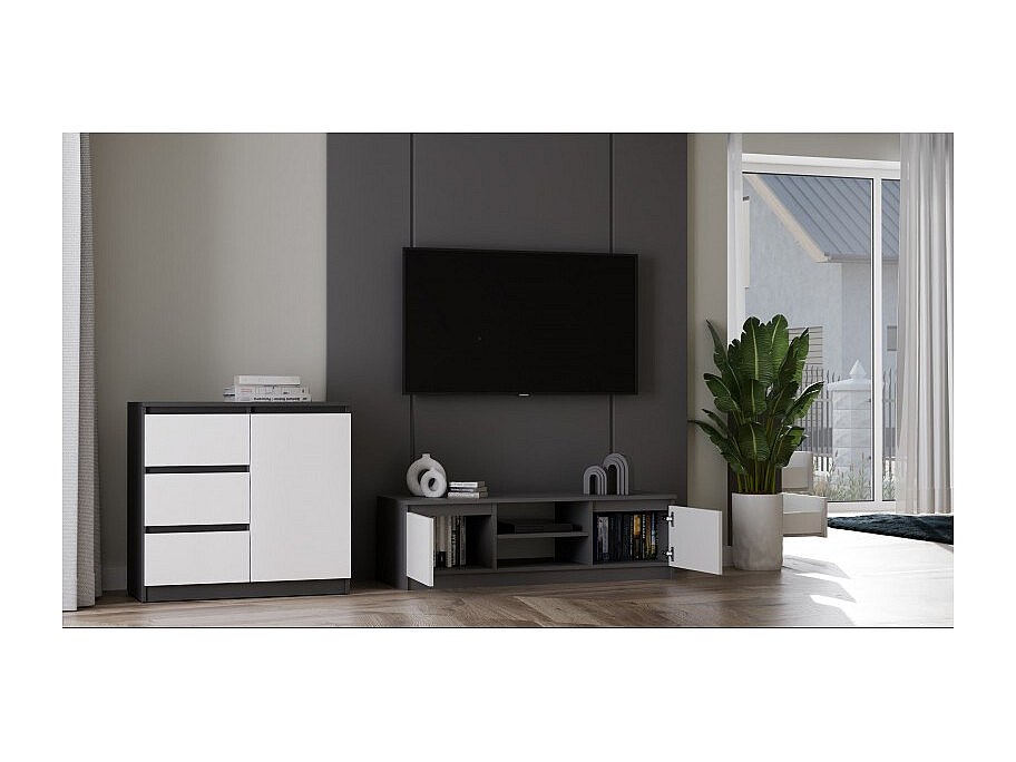 TIVOLI - Mobile TV in stile moderno - 120x40x36 cm - 2 nicchie + 2 ante - Antracite e bianco