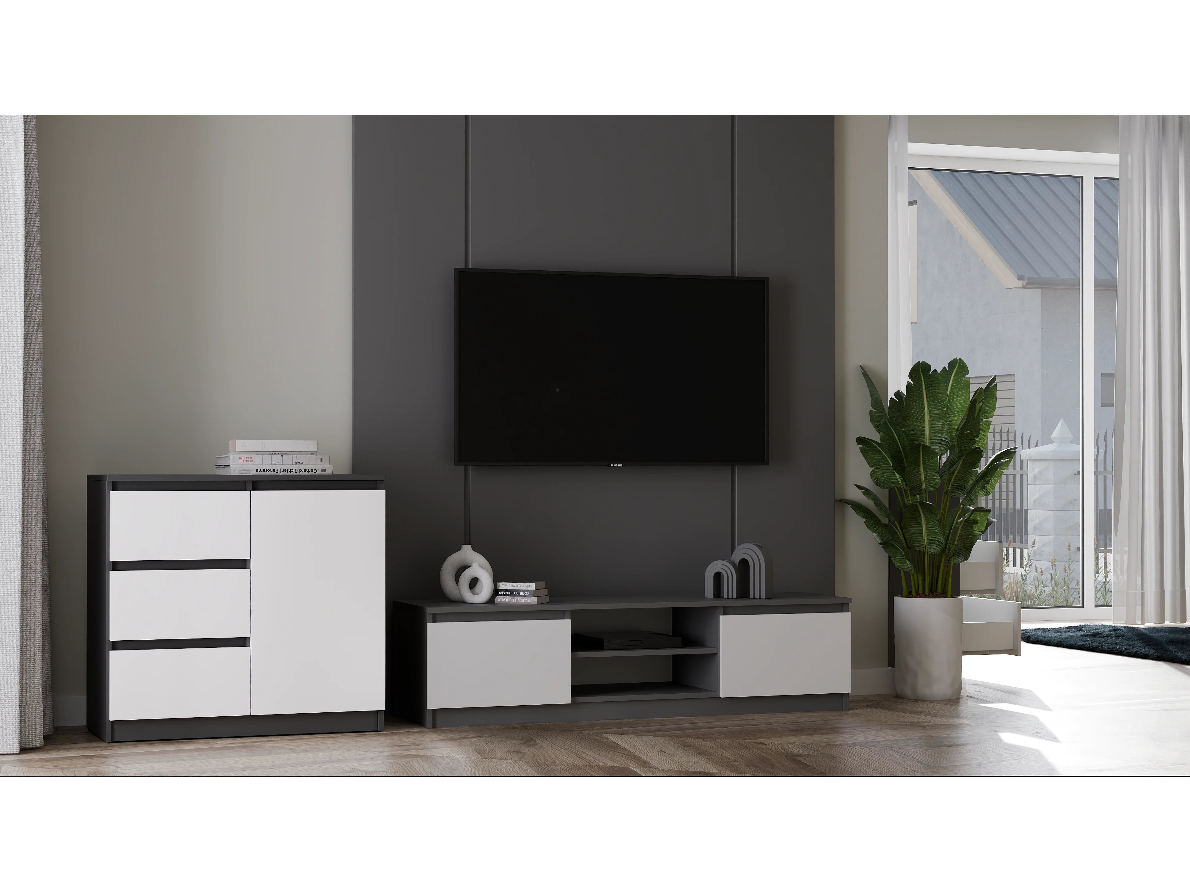 TIVOLI - Mobile TV in stile moderno - 140x40x36 cm - 2 nicchie + 2 ante - Antracite e bianco