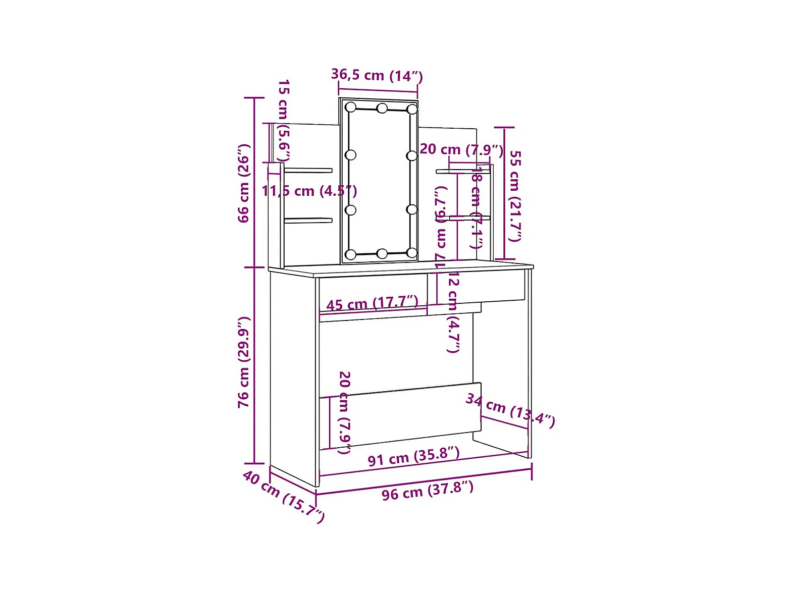 Toeletta con Luci LED Nera 96x40x142 cm