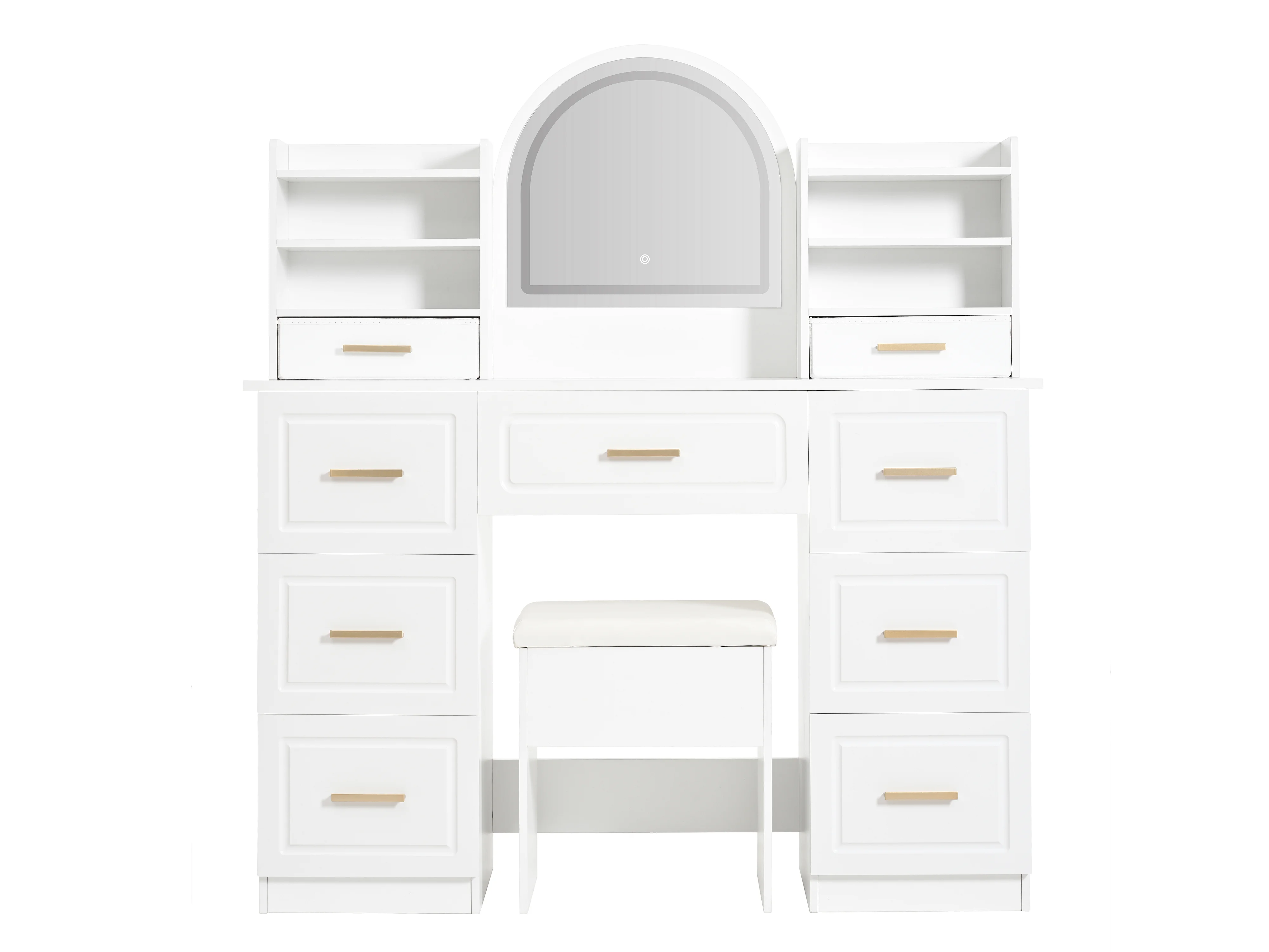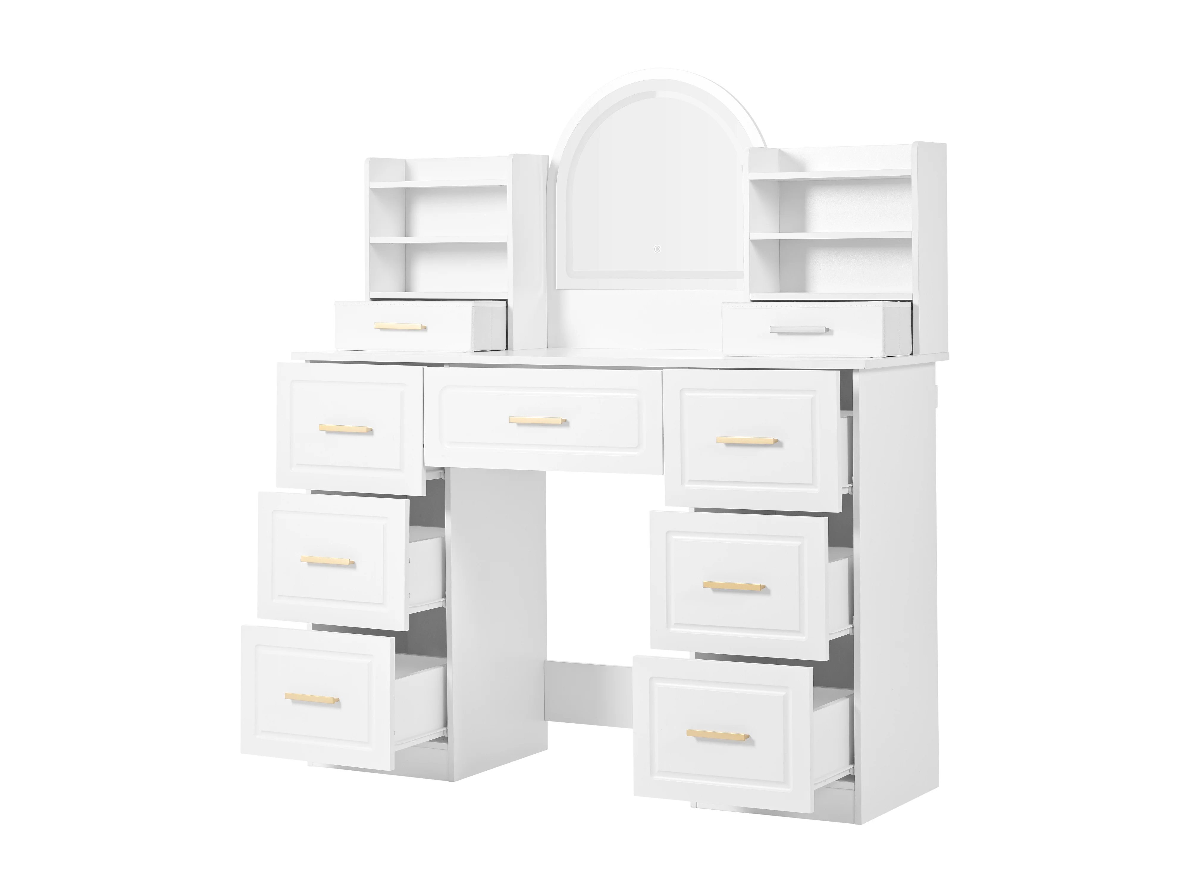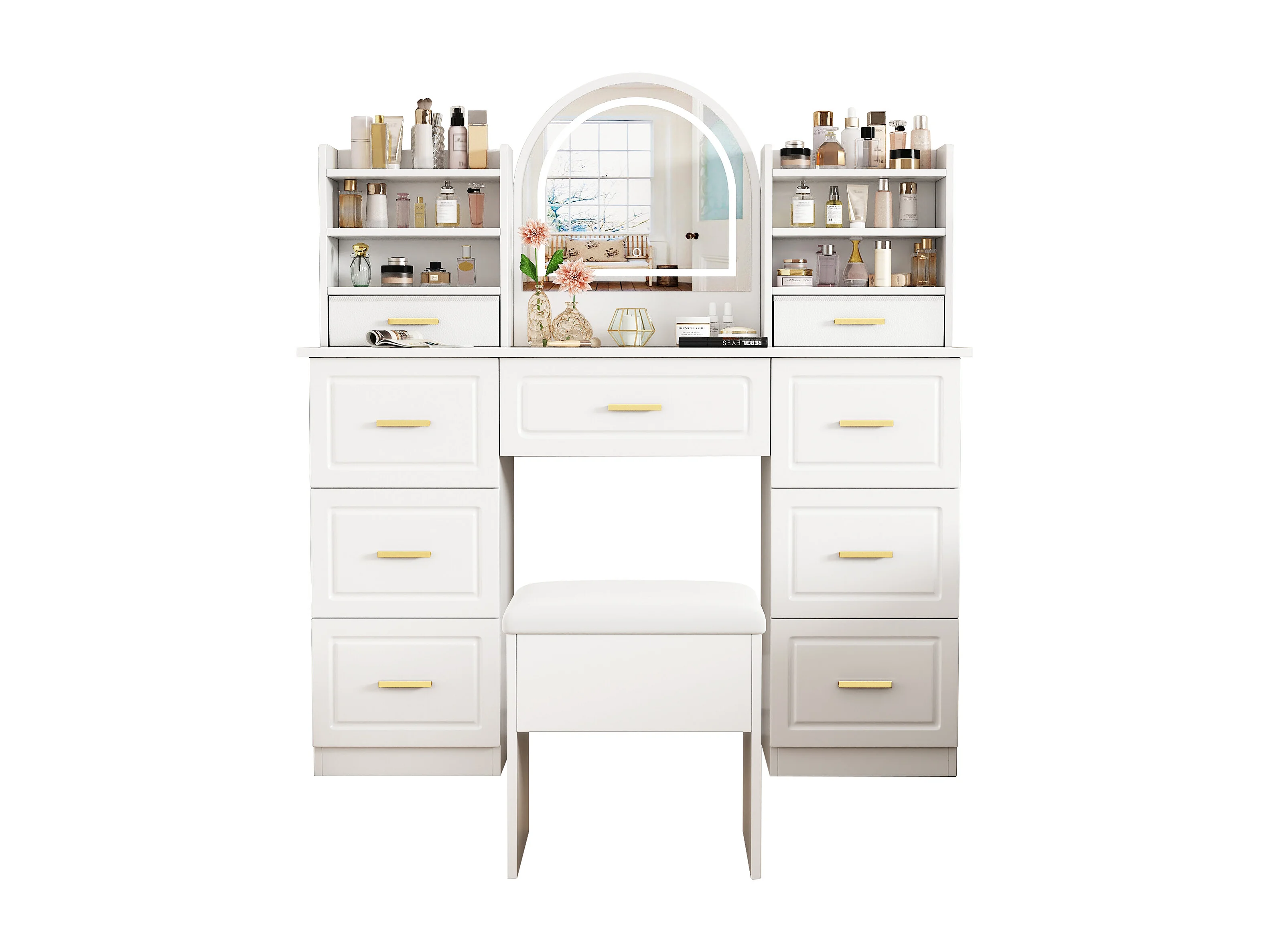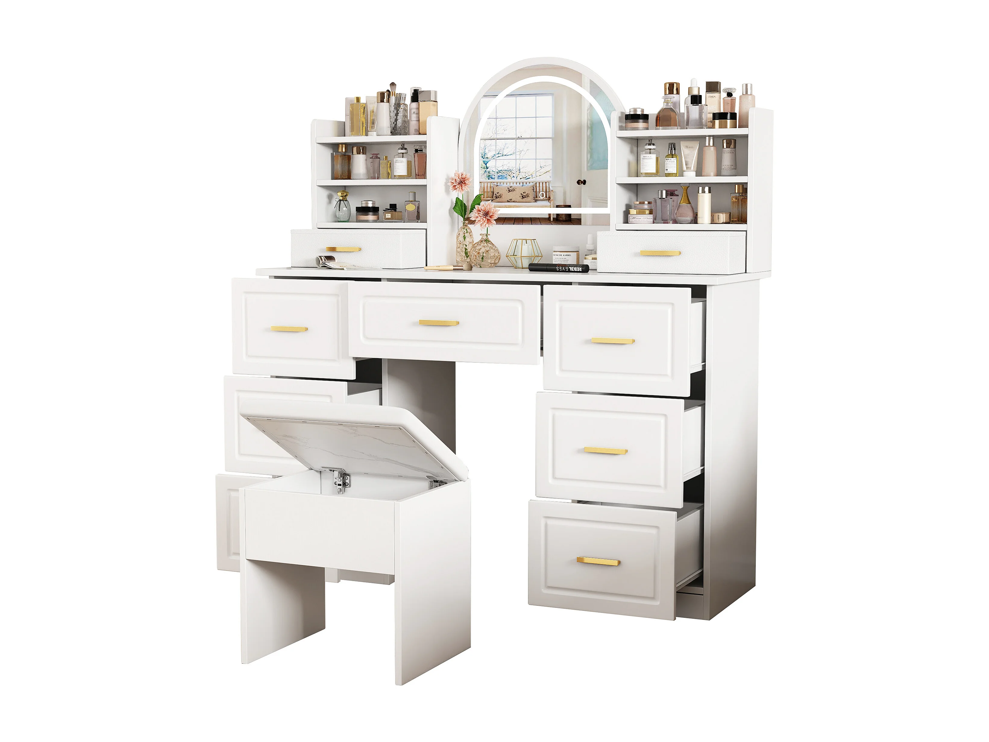 Toeletta con specchio 120x40x135 cm - con illuminazione LED - con 9 cassetti - bianco