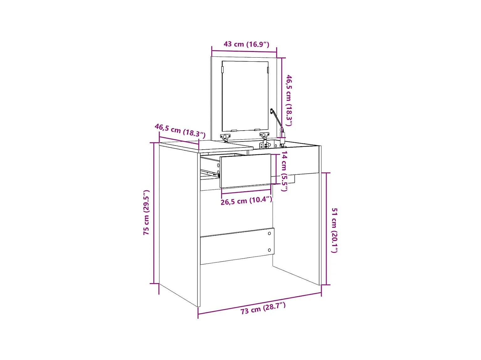 Toeletta con Specchio Bianco 73x46,5x120 cm