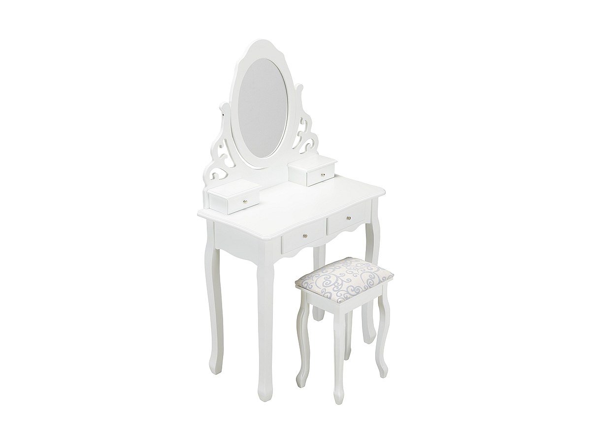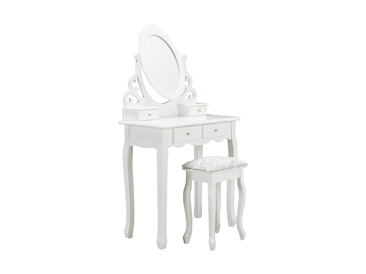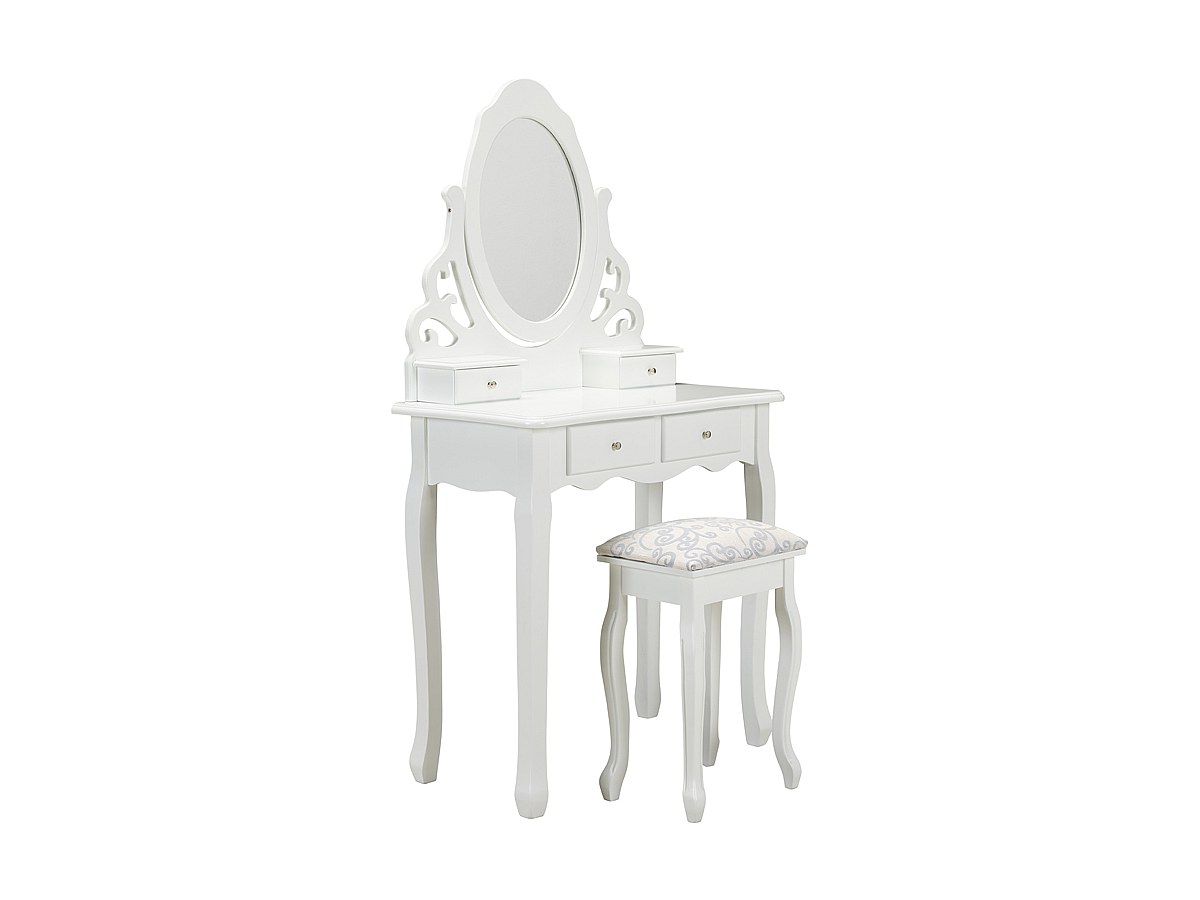 Toeletta e sgabello CESARIA - Con 1 specchio e 4 cassetti - Bianco